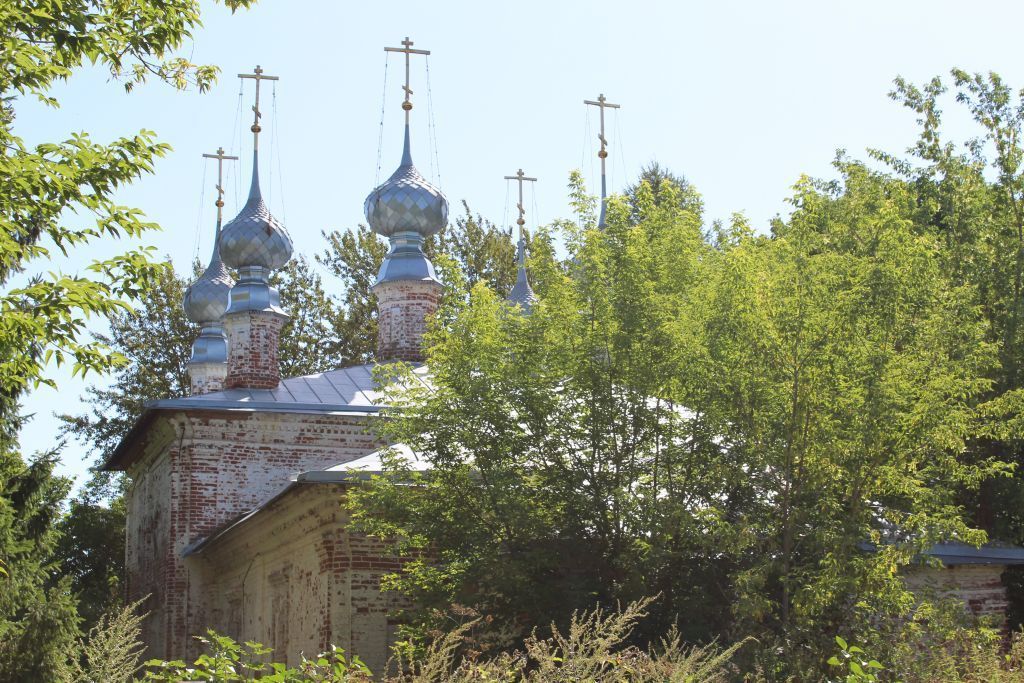 Объемно-пространственная структура объекта: план (прямоугольная в плане), композиция (кубический объем под четырехскатной крышей с широким барабаном и главкой, приземистого объема трапезная и небольшого объема крыльца, полукруглая апсида примыкает с востока);Конструктивные особенности: материал конструкций (кирпич, дерево, металл, фундамент бутовый); кладка, перекрытия (четверки – лотковый поперечный свод, апсида – коробовый с конхой, трапезная – полулотковый свод, палатки – коробовый свод); кровля (четверик – четырехскатная, апсида – конусообразная, трапезная – двускатная, колокольня – шатер с двумя рядами слухов); окна (форма, размер, расстекловка, материал, количество, декор);Внешнее декоративное убранство: гладкие фасады расчленены лопатками, поставленными на углах и в широких простенках окон апсиды и придела, цоколь выделен пояском поребрика, карниз с кокошниками, окна полуциркулярные имеют стрельчатое завершение с кирпичиками и слезкой, западный фасад объединен широким портиком с парными колоннами и фронтоном с круглым окном по середине, между колоннами на одной оси прямоугольные и полукруглые ниши.