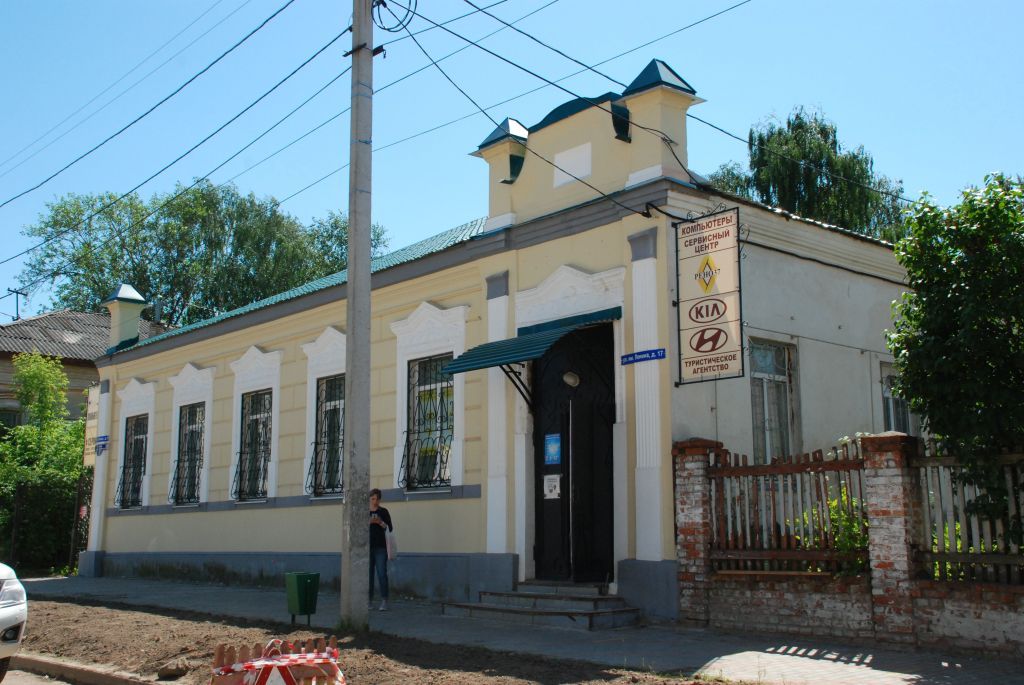 1. Местоположение ансамбля: в квартале, ограниченном улицами имени Ленина, имени Фрунзе, Комсомольской и Рылеевской.2. Пространственно-планировочная композиция ансамбля: главная композиционная ось ансамбля – перпендикулярная главному фасаду жилого дома. Жилой дом главным фасадом расположен по красной линии улицы имени Ленина. Палатка расположена продольно главной композиционной оси ансамбля вдоль границы с домовладением № 15. Между жилым домом и палаткой – проезд вглубь участка.3. Стилистическое решение ансамбля: ансамбль выполнен в едином стиле эклектики.
