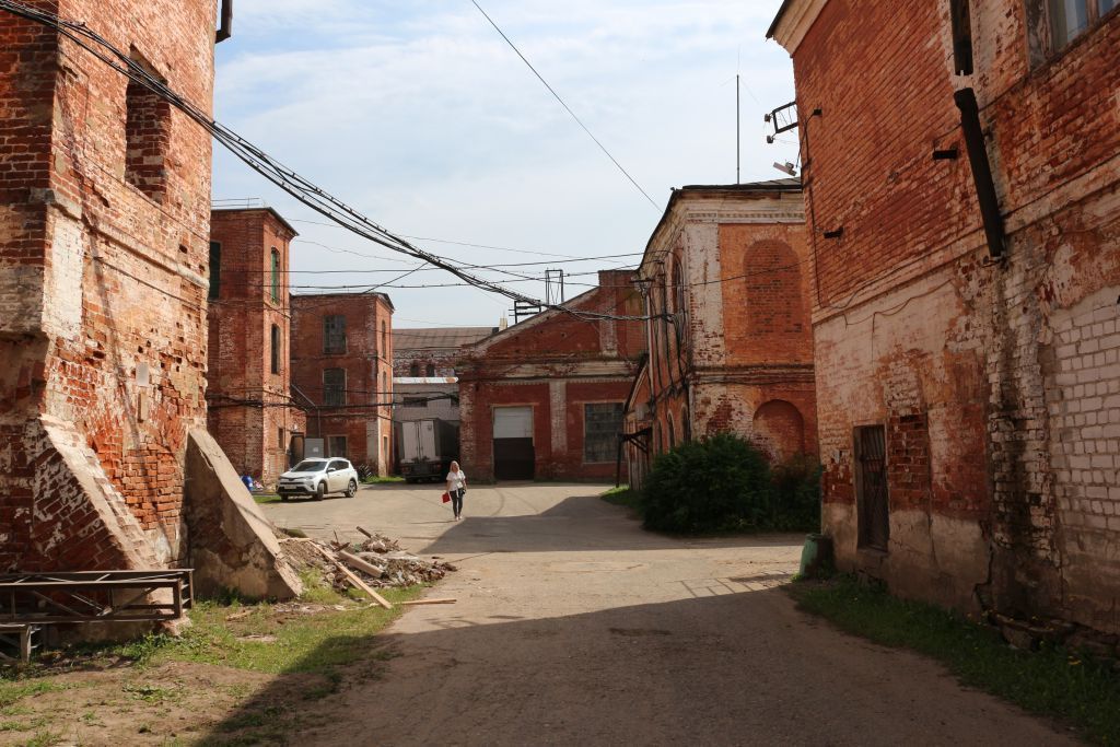 Пространственно-планировочная структура достопримечательного места.Расположение участка, где находится фабричный комплекс, на изгибе реки Вязьмы, на ее левом берегу. Земельный участок, окруженный рекой и каналом, в юго-западной части территории, на котором поставлен ориентированный по линии север-юг корпус отбельно-красильной фабрики, восточнее мастерские ситцевой фабрики. В северо-западной части территории корпус старой прядильно-ткацкой фабрики, ориентированный по линии восток-запад и завершенный трехэтажной водонапорной башней. Расположенное южнее ориентированное по линии восток-запад здание электростанции и центральной котельной. Восточнее – вытянутый по линии восток-запад новый прядильно-ткацкий корпус с помещениями для паровой машины, электростанции и котельной, примыкающими к южному фасаду. С севера от корпуса – дом директора фабрики. В южной части фабричной территории крупный, расположенный по линии север-юг, ситцевый корпус. Расположенные восточнее – граверная, параллельно ему – здание старого управления предприятием. Печатный корпус на южной границе территории, расположенный по линии восток-запад.Ценные элементы историко-градостроительной среды достопримечательного места.Наиболее ценные здания, формирующие пространственно-планировочную структуру комплекса:I.Старый прядильно-ткацкий корпус;II.Новый прядильно-ткацкий корпус;III.Помещение для паровых машин, электростанция и котельная нового прядильно-ткацкого корпуса;IV.Отбельно-красильный корпус;V.Ситцевый корпус;VI.Старое управление фабрикой;VII.Граверная;VIII.Печатный корпус;IX.Центральная электростанция;X.Мастерские ситцевой фабрики;XI.Жилой дом директора.I. Старый прядильно-ткацкий корпус.Объемно-пространственная структура: общий план приближается к прямоугольному, фасады усложнены за счет ризалитов и пристроек объемов разной этажности (от одного до четырех). Квадратная башня на западной части здания, поперечно расположенная прямоугольная в плане трехэтажная башня в центре здания. Расположенный с западной стороны трехэтажный объем, укрепленный с северной и западной сторон треугольными контрфорсами. С южной стороны объем электростанции. Конструкции и материалы: стены из красного кирпича, в технике лицевой кладки без штукатурки. Кровля металлическая. На фасаде электростанции архитектурные детали оштукатурены.Элементы фасадной композиции: лопатки, выделяющие углы отдельных объемов, междуэтажные полочки и венчающие профилированные карнизы. Окна с лучковыми перемычками. Трехэтажная башня: членение по горизонтали узкими полочками и завершение профилированным карнизом. На нижнем ярусе крупное арочное окно, оформленное архивольтом, выполненным клинчатой кладкой, с замковым камнем. На среднем ярусе сдвоенные арочные окна, оформленные архивольтами, верхние окна лучковые. На фасаде электростанции крупные арочные окна.Элементы оформления фасадов: балконы на ажурных кронштейнах на южном фасаде корпуса.II. Новый прядильно-ткацкий корпус.Объемно-пространственная структура: прямоугольный трехэтажный объем под вальмовой кровлей, повышенный до четырех этажей на восточном торце. С запада примыкает перпендикулярно расположенный объем.Конструкции и материалы: стены из красного кирпича, в технике лицевой кладки без штукатурки. Кровля металличес