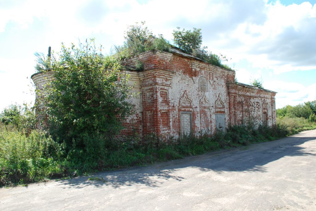 1. Местоположение: в центре села на высоком берегу реки Ирмес.2. Объемная композиция здания: сочетание прямоугольных объемов – повышенного четверика храма, несколько ниже его – объемы прямоугольной в плане трапезной и полукруглой в плане апсиды.3. Конструкции и материалы: кирпичные стены.4. Планировочная структура: зальные пространства храма, трапезной, апсиды.5. Архитектурная композиция фасадов: угловые широкие лопатки фасадов основного четверика, по его центру в нижнем ярусе – симметрично расположенные три оконных проема, над центральным во втором ярусе – полуциркулярный проем, в верхней части фасадов – карниз; ритмично расставленные три оконных проема апсиды, ее венчающий антаблемент; по два окна фасадов трапезной, ее угловые лопатки и антаблемент.6. Элементы декоративного оформления фасадов: стиль эклектика со стилизацией мотивов древнерусского зодчества; две фигурные филенки, «свисающие» с карниза основного четверика, карниз многоступенчатый; лопатки четверика и трапезной с филенками, имитирующими ширинки, на лопатках четверика – антаблемент в уровень антаблемента фасадов апсиды и трапезной, прямоугольные окна везде с рамочными наличниками с высоким килевидным завершением; антаблемент апсиды, трапезной, а также лопаток четверика, состоящий из плоского фриза, образованного в нижней части однорядным пояском, и многоступенчатого карниза. Весь декор – в кирпиче.