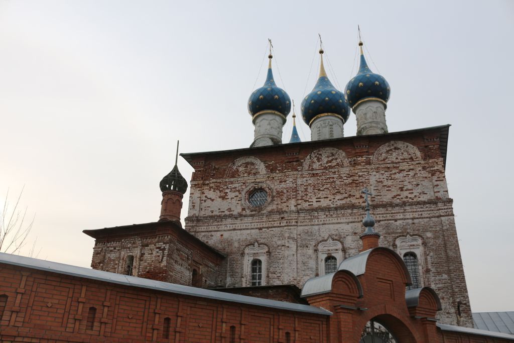 Объемно-пространственная структура объекта: план (сложная в плане), композиция (пятиглавый трехсветный четверик с тремя пониженными полукружиями апсид, втянутая паперть с западного фасада объединяет центральные ворота ограды с храмом, с южного и северного фасадов пристроены два четверика с главками: односветный и двусветный, с востока к ним примыкают апсиды, поставленные в одну линию с апсидами основного объема);конструктивные особенности: материал конструкций (кирпич, дерево, металл, фундамент бутовый); кладка, перекрытия (четверик – крестовый свод, апсида – конха, приделы – монастырский, сомкнутый свод, притвор – крестовый свод); кровля (четверик – четырехскатная, апсида – полукруглая, придел - четырехскатная, притвор – двускатная); окна (размер, количество, материал, расстекловка, форма, декор);Внешнее декоративное убранство: фасады четверика расчленены лопатками на три прясла, широкий пояс из поребриков и шишек, венчает фасады пояс из ложных закомар, цилиндрические барабаны декорированы аркатурно-колончатыми поясками с кокошниками; окна – арочные и прямоугольные, в наличниках с боковыми колонами и килевидными очельями, восьмигранное окно в профильном обрамление, на западном фасаде – окно с гирькой и трехкилевым очельем наличника, окна приделов – трехчастная композиция из прямоугольных окон, арочные, обрамленные наличниками с полукруглым профилированным завершением, окна апсиды с фронтонным завершением, гнутые решетки; притвор – четырехколонный портик.Внутреннее декоративное убранство: фрески, профилированный антаблемент в завершении колонн.