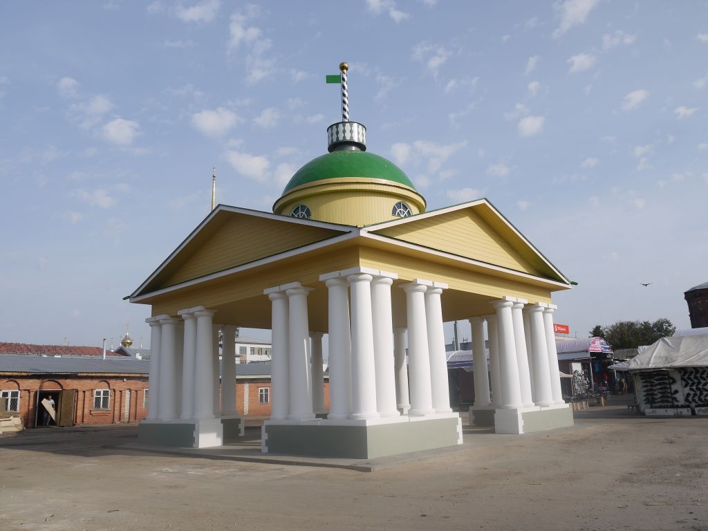 Объемно-пространственная структура объекта: единая композиция двух похожих зданий, расположенных друг напротив друга; северный корпус: единый объем, объединяющий одноэтажное с мезонином, вытянутое вдоль оси восток-запад здание; композиция (равнозначность композиции, группировка оконных проемов, входов); этажность (один с мезонином); кровля (форма, материал); материал (кирпич); внутренняя планировка; южный корпус: единый объем, объединяющий «П»-образный в плане одноэтажный корпус с мезонином; вытянутое вдоль оси восток-запад здание; композиция (равнозначность композиции, группировка оконных проемов, входов); этажность (один с мезонином); кровля (форма, материал); материал (кирпич); внутренняя планировка; мерные весы: квадратная в плане ротонда; кровля (форма, материал,); шпиль (форма, материал (дерево)); материал (кирпич, дерево, камень);Конструктивные особенности: материал (кирпич, металл), перекрытия (форма, материал); кирпич (размер, компоновка связующих материалов, техника кладки), оконные проемы (форма, геометрия рисунка переплета, перемычки: арочные, прямые, материал (дерево)); кровля (форма, материал);Внешнее декоративное убранство: северный корпус: ризалит главного фасада; четырехколонный портик тосканского ордера (конфигурация, форма); убранство оконных проемов (конфигурация; форма;); венчающий карниз (форма); полуколонны (конфигурация; форма); двухколонные портики с треугольными фронтонами (композиция, форма); пилястры; южный корпус: ризалит главного фасада; четырехколонный портик тосканского ордера (конфигурация, форма); пилястры и полуколонки в простенках (форма, расположение); двухколонные портики с треугольными фронтонами (композиция, форма); сандрик (форма, расположение); оконные проемы (форма, геометрия рисунка переплета, перемычки: арочные, прямые, материал (дерево)); венчающий карниз (форма); мерные весы: восьмиколонные портики фасадов (колонны тосканского ордера); антаблемент (форма); фронтон (форма); люкарны (количество, расположение, форма);Внутреннее декоративное убранство: планировка; двери (материал, форма).