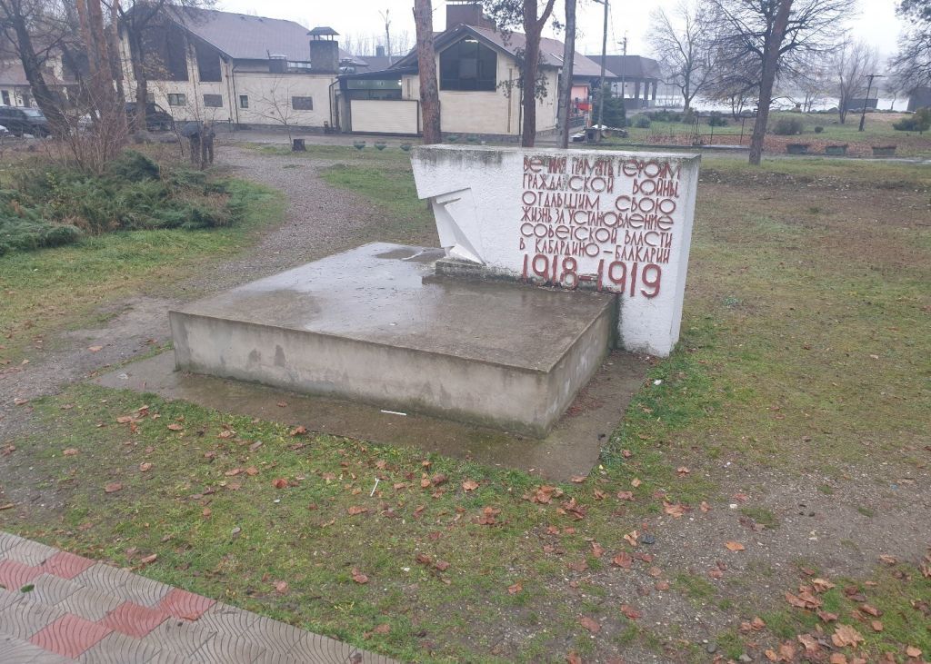 Предметом охраны памятника является:•место расположения памятника на нижней террасе \"Атажукинского сада\" рядом с загсом;•габариты, силуэт памятника;•объемно-пространственная композиция, состоящая из бетонного обелиска с барельефным изображением скорбного лица горца, с перечнем имен казненных на обратной стороне и надписью на главном фасаде: «Вечная память героям гражданской войны, отдавшим свою жизнь за установление Советской власти в Кабардино-Балкарии 1918-1919» установленная на невысоком постаменте.