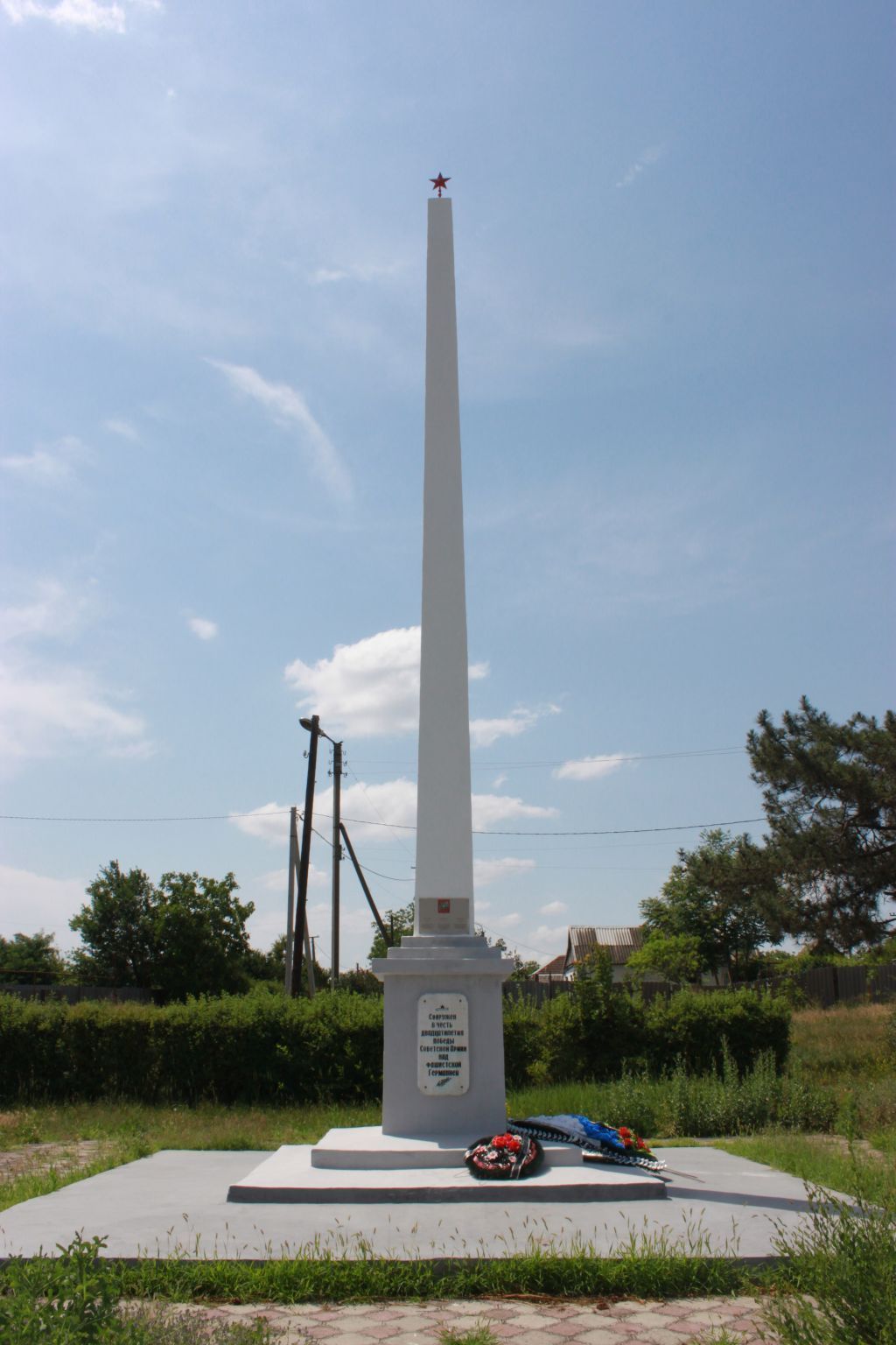 1. Градостроительная охрана1.1 Расположение монумента и основная точка восприятия в северо-западном направлении (фото)1.2 Основная точка восприятия в северо-восточном направлении (фото)1.3 Основная точка восприятия в юго-восточном направлении (фото)2. Архитектурная охрана (экстерьер) 2.1 Объемно-пространственное решение — бетонный обелиск на постаменте и ступенчатой базе (фото)2.2 Объемно-пространственное решение — бетонный обелиск на постаменте и ступенчатой базе, дорожки к обелиску вымощены тротуарной плиткой (фото)2.3 Характер архитектуры главных фасадов:2.3.1 - композиция монумента в юго-восточном направлении (фото)2.3.2 - фрагмент постамента, материал — бетон (фото)2.3.3 - фрагмент обелиска, материал — бетон (фото)2.3.4 - пирамидальное навершие- красная пятиконечная звезда (фото)2.3.5 - мемориальная доска, материал — мрамор (фото)2.3.6 - мемориальная доска, материал — мрамор (фото)