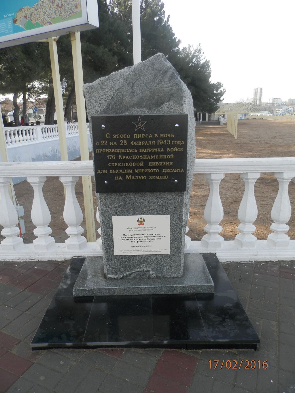 Памятное место, где 22 - 23 февраля 1943 г. производилась погрузка 176-й Краснознаменной стрелковой дивизии для высадки десанта на Малую землю