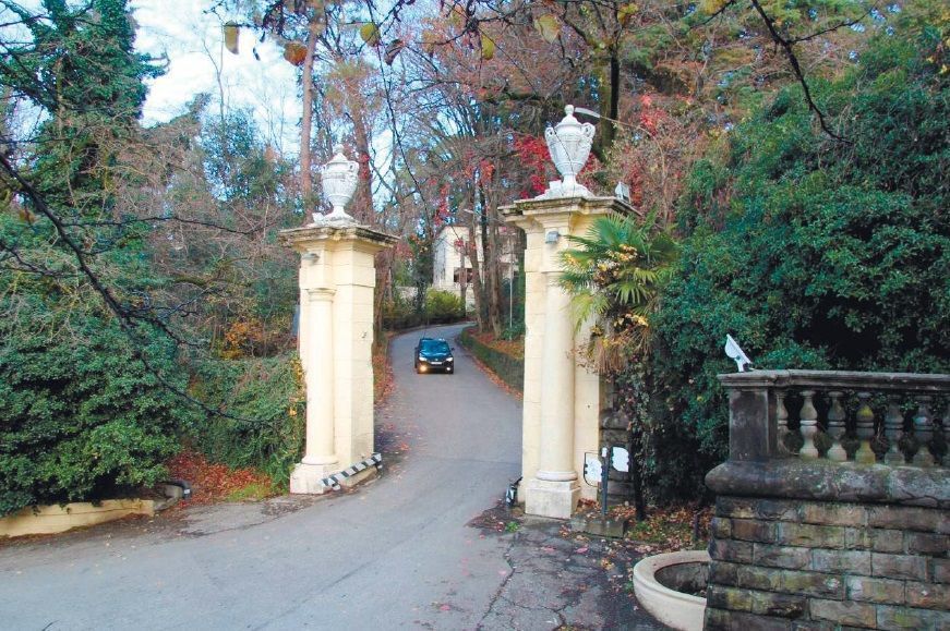 Градостроительные характеристики: элемент дворцово-паркового комплекса; основные направления видовых раскрытий: Курортный проспект; объемно-пространственная композиция: ворота представлены двумя квадратными в плане столбами; композиционное и архитектурно-художественное оформление фасадов: столбы оформлены накладным дорическим ордером; литые бетонные кратеры, декорированные меандром и лавровыми ветвями.