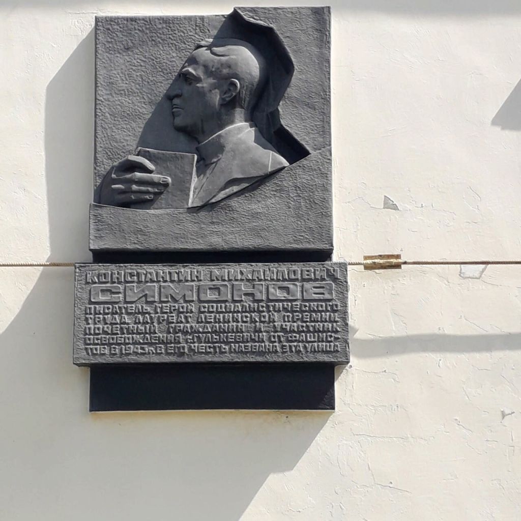 Барельеф К.М. Симонова в память о его участии в освобождении города