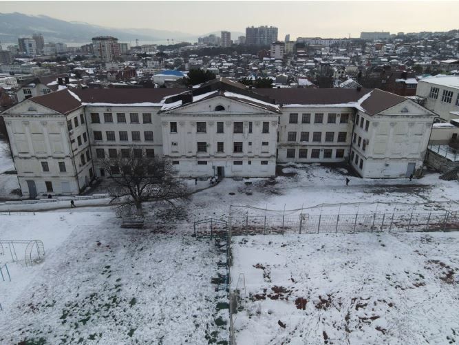 Градостроительные характеристикиМестоположение. В селитебной зоне городской застройки в глубине двора, с отступом от красной линии ул. Гладкова. Габариты, силуэт: габаритные размеры здания: трехэтажное, частично четырехэтажное за счет добавления нулевого этажа в месте понижения отметки рельефа; протяженность главного юго-восточного фасада вдоль ул. Гладкова – 77,85 м; протяженность торцевого юго-западного фасада – 19,8 м; высота наиболее высокой точки конька от наиболее низкой вертикальной отметки земли – 20,45 м; силуэт симметричный, с возвышающейся средней частью портика. Секторы и направления видовых раскрытий, визуальные связи памятника: секторы раскрытия объекта с юга, востока, запада и севера. Архитектурные и конструктивные характеристикиОбъемно –пространственная композиция здания: 3-х частная симметричная композиция из трех объемов, в плане имеющая букву «Ш», относящаяся ко времени строительства 1935 г.; возвышающийся центральный объем, где расположен главный вход, выделенный портиком с колоннадой, к нему с двух сторон присоединяются два симметричных Г-образных крыла; юго-западное крыло здания и центральный объем имеют 3 этажа, северо-восточное крыло – 4 этажа за счет дополнительного 0-го этажа, получившегося по причине существующего перепада высот на участке. Форма, конструкции крыши: центральная часть здания накрыта двухскатной крышей по двум фронтонам, конек над центральной частью выше коньков двухскатных крыш Г-образных крыльев, которые примыкают к центральной части здания и завершаются симметричными треугольными фронтонами; конструкции крыши – деревянные стропила. Материал стен и характер обработки фасадов: фундаменты ленточные из бутового камня; стены из бутового камня; декоративное убранство фасадов, выполненное из бетона и штукатурки; отделка наружных стен – покраска в светло-бежевый цвет с выделением архитектурных декоративных деталей краской белого цвета; поверхность фасадов и архитектурного декора – гладкая. Архитектурно - планировочное решение: конструктивно- планировочная схема из несущих наружных и внутренних стен, в том числе возведенных в 1954 г. подпорные несущие стены, их конфигурация и местоположение. Композиция и архитектурно-художественное оформление фасадовКомпозиция и архитектурно-художественное оформление юго-восточного фасада3-х частная симметричная композиция, обращенная на ул. Гладкова, состоящая из центральной части, увенчанной портиком, и двух симметричных крыльев – левого (юго-западного) и правого (северо-восточного), осложненная добавочным нулевым этажом в северо-восточном крыле. Центральная часть юго-восточного фасада: симметричная композиция фасада; деление фасада по вертикали на три части: ризалит первого этажа, средняя часть из объединенных второго и третьего этажей, треугольный портик; межэтажный трехступенчатый карниз, проходящий по обводу ризалита, отделяющий первый этаж; отделка ризалита первого этажа ленточным рустом; разделение средней части на семь прясел восемью коринфскими пилястрами, среднее прясло в три оси шире других; по девять осей проемов на 2 и 3 этажах, три средние оси, размещенные на среднем широком прясле, объединены через узкие простенки в одну группу наличником; на втором этаже третья, пятая и седьмая оси представляют собой балконные двери, че
