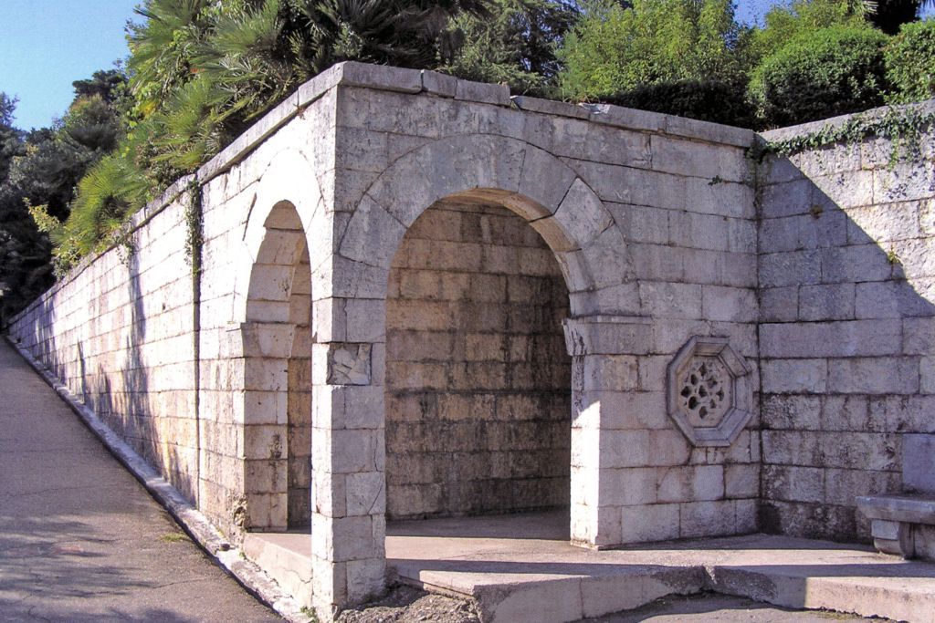 а) градостроительные характеристики- ценный элемент пространственной композиции комплекса;- составляющая парадной входной группы комплекса;- характерные точки визуального восприятия: Курортный проспект, парк;б) функциональные характеристики- планировка территории;- декоративная функция;- система противооползневых мероприятий: подпорные стены, поддерживающие горизонтальные террасы, на которых возводились здания, устраивались дороги и парковые зоны;в) ландшафтные характеристики- типы искусственного озеленения: регулярный парк;- приемы озеленения: парковые партеры, клумбы, цветники, газоны, куртины из миниатюрных пальм, бордюры из стриженного вечнозеленого кустарника;- приемы благоустройства: мощение бетонными плитами;г) архитектурно-конструктивные характеристики- основные строительные материалы: конструкции бетонные, облицовка из природного камня;- стены, обрамляющие вход на главную лестницу;- архитектурное решение: каменные павильоны, предназначенные для ожидания общественного транспорта; выступающий угол павильона прорезан двумя полуциркульными арками; массивные бетонные скамьи; пилоны, фланкирующие главную лестницу;- декоративное решение: восьмигранное окно с ажурным каменным заполнением; бетонные скульптуры;д) исторические характеристики- подпорные стены II отделения построен в 1948 г., введен в эксплуатацию в 1955 г. в составе комплекса санатория «Чайка»;- авторы проекта: ленинградские архитекторы А.В. Крестин, А.И. Иванов, О.Г. Размевич и И.Н. Шиков;- авторы скульптурной композиции - скульпторы П. Якимович, Л.Тюрич, лепщики В. Бережной, В. Тиль.