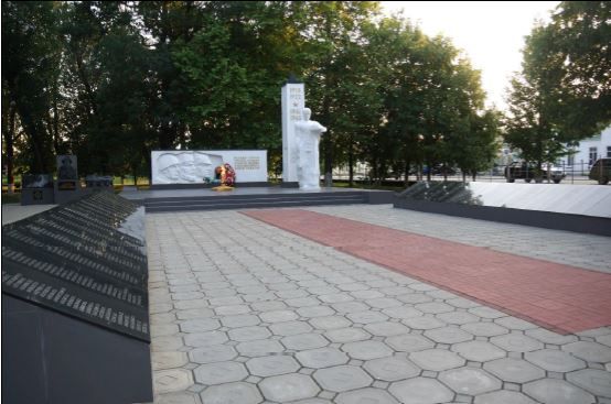 Градостроительные характеристики:элемент композиционно-планировочной структуры парка; расположение в западной части парка, около двенадцати метров от дорожного полотна улицы Советской;ориентация элементов мемориального комплекса на северо-восток.Объемно-пространственные и планировочные характеристики:объемно-пространственная композиция мемориального комплекса:братское захоронение двенадцати воинов, погибших в годы гражданской и Великой Отечественной войн;площадка над захоронением, с тремя ступенями с северо-востока;стена с рельефом и памятной надписью, расположенная в юго-западной части бетонной площадки;чаша с вечным огнем в центральной части бетонной площадки, расположенная с северо-востока по оси бетонной стены;стела с памятными надписями в центральной части площадки, расположенная с северо-запада по оси чаши с вечным огнем;скульптура солдата, расположенная с северо-востока по оси стелы;высотные и объемно-планировочные характеристики памятных знаков мемориального комплекса (площадка, стена с рельефом и памятной надписью, чаша с вечным огнем, стела с памятными надписями, скульптура) и их частей;конфигурация и габариты памятных знаков мемориального комплекса (площадка, стена с рельефом и памятной надписью, чаша с вечным огнем, стела с памятными надписями, скульптура) в пределах исторических конструкций.Конструктивные характеристики:материалы, конструкции, декоративная обработка памятных знаков мемориального комплекса (площадка, стена с рельефом и памятной надписью, чаша с вечным огнем, стела с памятными надписями, скульптура): бетон с отделкой.Композиционное и архитектурно-художественное решение памятных знаков:квадратная в плане площадка с тремя ступенями с северо-востока;прямоугольная стена на цоколе, с барельефом, изображающим три портрета в профиль: отец, сын-солдат и красноармеец. На стене рельефная надпись: «Вечная слава героям, павшим в боях за свободу и независимость нашей Родины»;чаша с вечным огнем на квадратном в плане постаменте;квадратная в плане стела на цоколе, с памятными надписями: «1918», «1922», рельефная пятиконечная звезда, «1941», «1945», «Здесь похоронены участники Гражданской и Великой Отечественной войн»;памятные знаки мемориального комплекса (площадка, стена с рельефом и памятной надписью, чаша с вечным огнем, стела с памятными надписями) – работа архитектора Чайка Г.М.;скульптура солдата в полный рост в солдатской экипировке и обнаженной, опущенной головой; с каской в левой согнутой руке и автоматом в опущенной правой руке. Особенность внешности – усы и зачесанные на левый бок волосы с пробором. Снизу имитация врезки скульптуры в неотесанный камень. Скульптура расположена на квадратном в плане постаменте. Характеристики, параметры и материальные элементы, непосредственно связанные с мемориальным периодом:братское захоронение;объект материальной культуры, созданный для увековечения памяти воинам-односельчанам, погибшим в годы гражданской и Великой Отечественной войн.Предмет охраны может быть уточнен на основании комплексных научных исследований в процессе подготовки научно-проектной документации по сохранению объекта культурного наследия.
