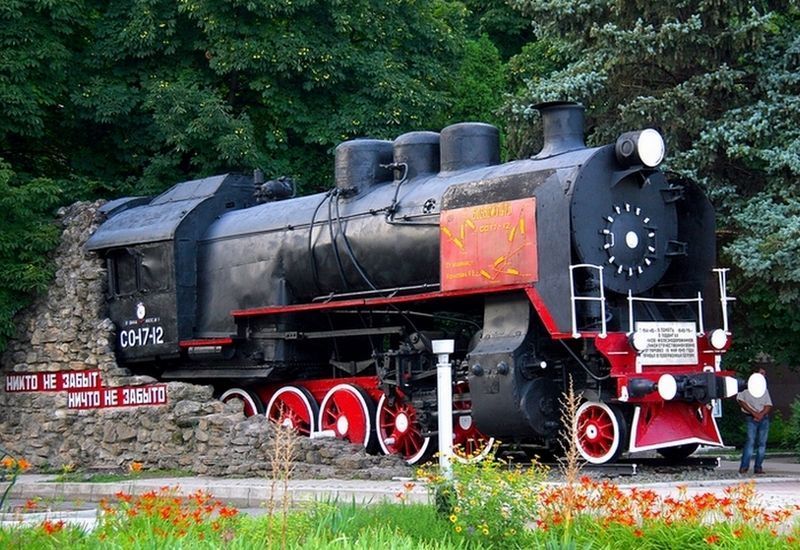 Паровоз "СО17-12", прибывший 10 мая 1945 г. с грузом в поверженный Берлин и установленный в честь трудовых и боевых подвигов железнодорожников