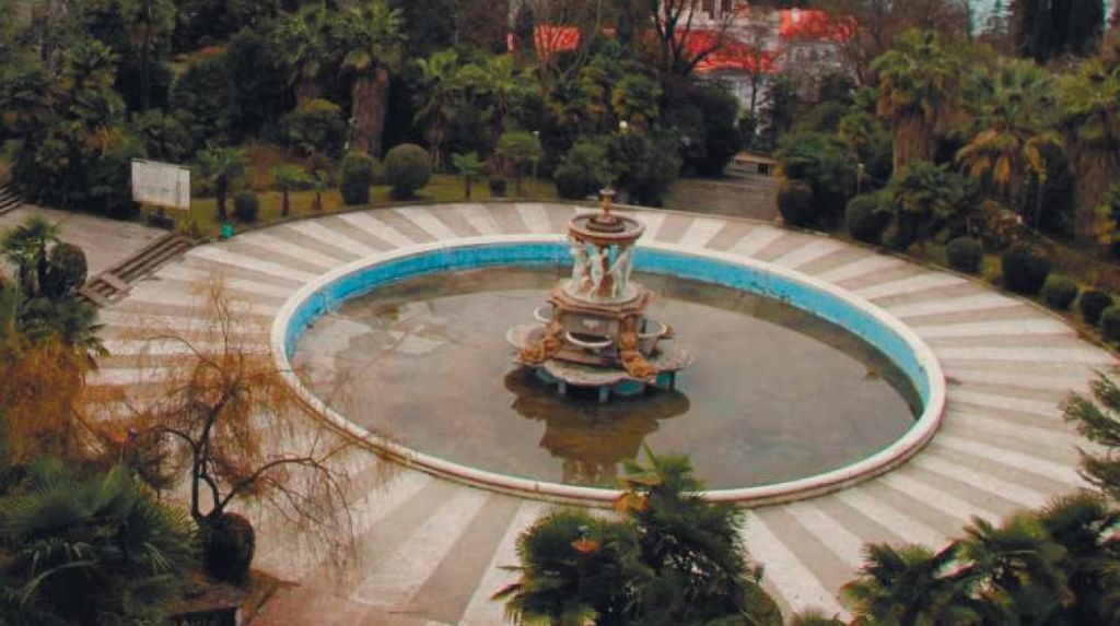 Градостроительные характеристики: элемент дворцово-паркового комплекса; акцент центральной части партера, организованного объемной композицией зданий клуба-столовой с крыльями спальных корпусов; основные направления видовых раскрытий: терраса, партер, здание клуба- столовой и спальные корпуса № 1 и 2; объемно-пространственная композиция: сложное трехъярусное водометное садово-парковое сооружение в центре обширного круглого бетонного бассейна; композиционное и архитектурно-художественное оформление: скульптурные композиции в античном духе; маскароны, изливающие воду; нереиды, сидящие на дельфинах; скульптурная группа изображает аттическое театрализованное шествие Диониса с дифирамбическими хорами вакханок.