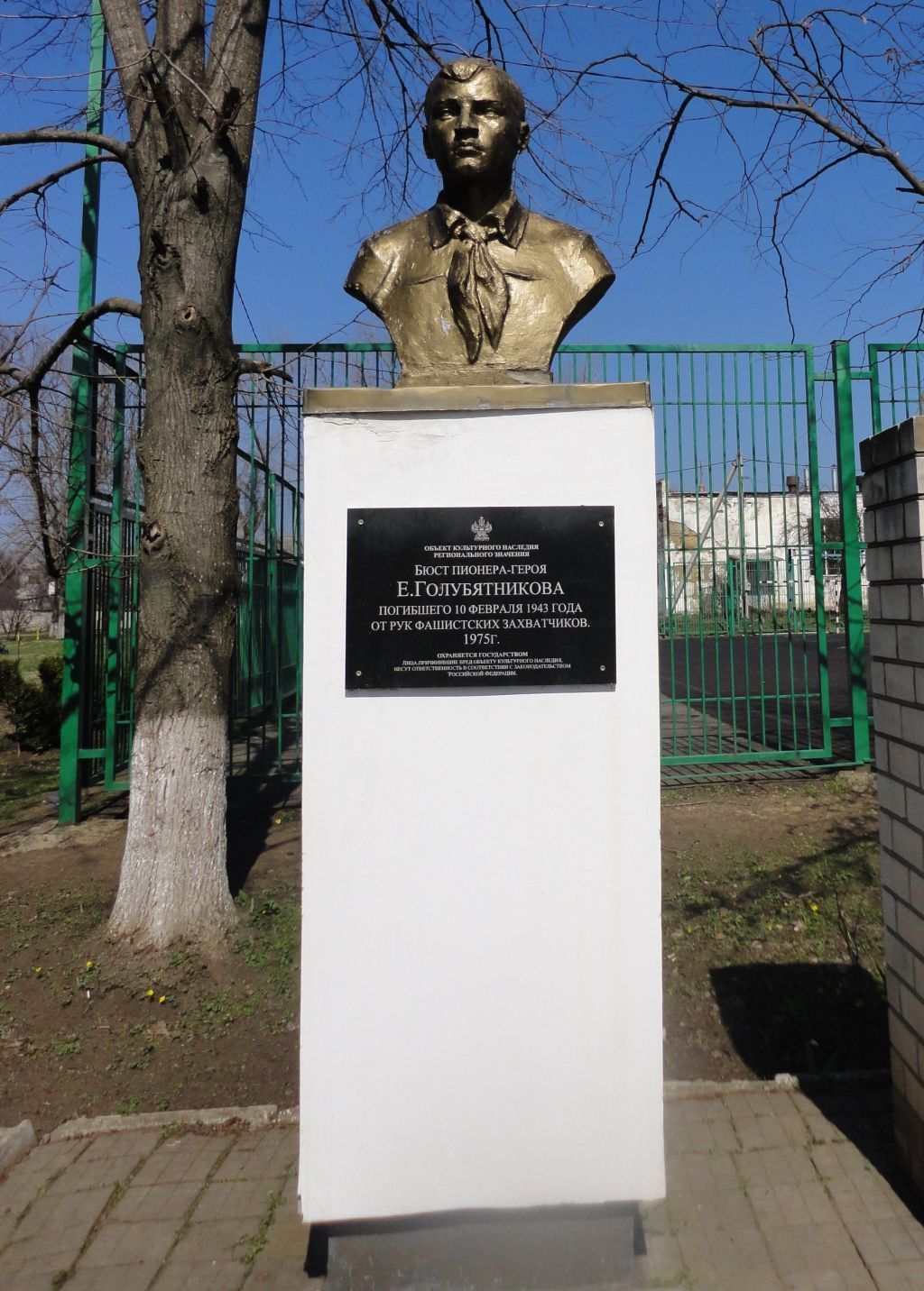 Бюст пионера-героя В. Голубятникова, погибшего от рук фашистских захватчиков