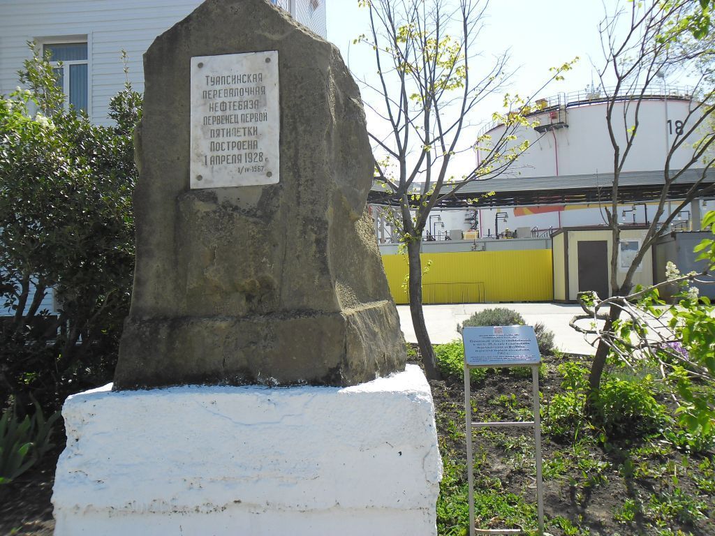 Памятный знак, установленный в честь 40-летия Туапсинской перевалочной нефтебазы - первенца первой пятилетки