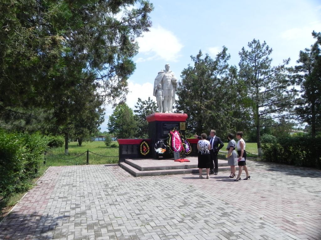 1.Градостроительные характеристикизначимый элемент композиционно-планировочной структуры центральной части села Ейское Укрепление;расположение в центральной части сквера по оси главной аллеи, композиционный центр;характерные точки визуального восприятия:ближние точки: с территории памятника;дальние точки: с запада, со стороны главной аллеи сквера.2.Архитектурные и конструктивные характеристики объемно-пространственная композиция: четырехугольный постамент с профильным карнизом; постамент завершает скульптура;на фасаде постамента расположена мемориальная плита; справа и слева от постамента две плиты с профильными карнизами; мемориальное сооружение установлено на стереобате с двумя лестничными подходами;в центре композиции на стереобате расположен вечный огонь; архитектурно-художественное решение:скульптура изображает солдата в полный рост с развивающимся за спиной плащом, с каской в согнутой левой руке и ребенка (девочку), которую он закрывает правой рукой;надпись на постаменте гласит: «Вечная память борцам, погибшим в борьбе за свободу и независимость нашей Родины»;на плитах отмечены имена погибших односельчан в годы гражданской и Великой Отечественной войны;постамент с плитами выполнены из черного туфа;вечный огонь представляет из себя красную пятиконечную звезду;стереобат выполнен из базальта.3.Исторически ценные характеристики братское захоронение;объект материальной культуры, созданный для увековечения памяти погибших за власть Советов в годы гражданской и Великой Отечественной войн.