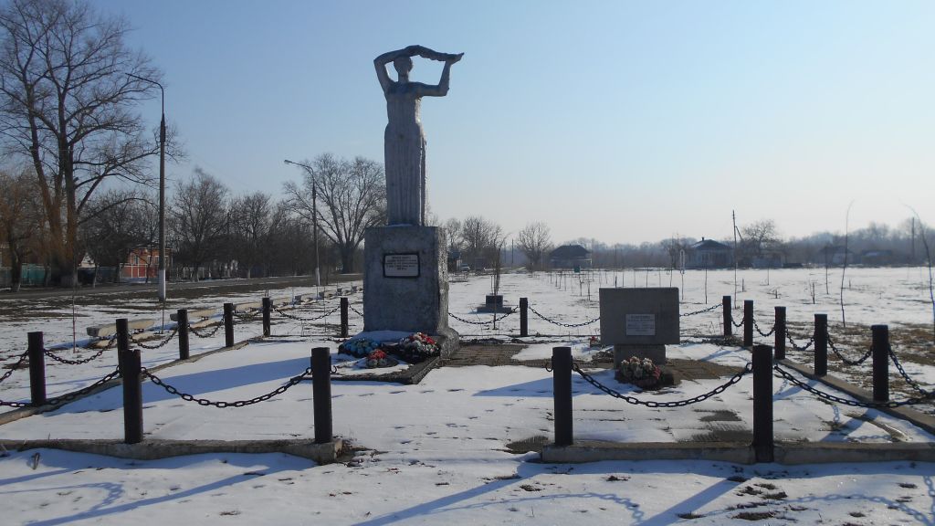 Братская могила советских воинов погибших в боях с фашистскими захватчиками и могила учительницы Косторезовой и двух ее детей, расстрелянных фашистами