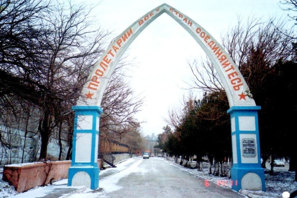 Арка, сооруженная в честь миллионной бочки цемента, выпущенной цементным заводом "Пролетарий" после окончания гражданской войны