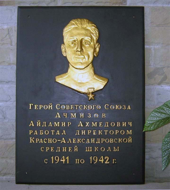 Памятный знак Герою Советского Союза А.А. Ачмизову, работавшему директором школы