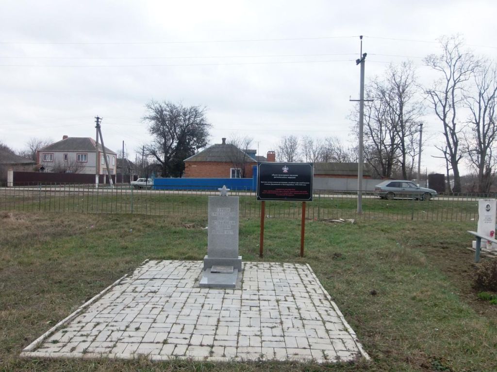 Братская могила воинов-истоминцев, погибших при освобождении станицы Дядьковской от белогвардейцев. Установлен обелиск