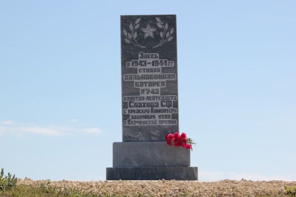 Памятное место, где в 1943 - 1944 годы располагалась 743-я батарея крейсера "Коминтерн" под командованием капитан-лейтенанта С.Ф. Спахова
