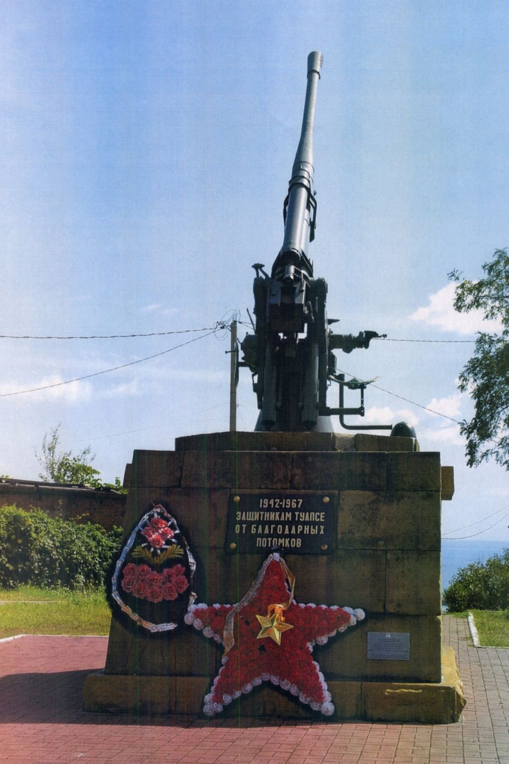 Зенитка, установленная в честь воинов 73-го зенитного артиллерийского полка, принимавших участие в защите города в 1942 г. от фашистских захватчиков