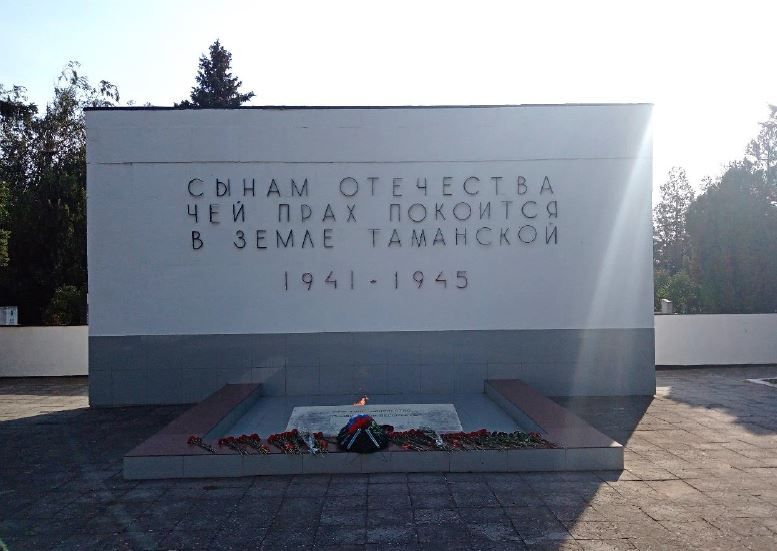 Градостроительное положение:центральный элемент композиционно-пространственной структуры ансамбля «Братское кладбище советских воинов, погибших в боях с фашистскими захватчиками», 1942-1943 годы, Краснодарский край, Темрюкский район, г. Темрюк, ул. Бувина, воинское кладбище;характерные точки визуального восприятия: видовое раскрытие в просвете парадного входа мемориального комплекса с ул. Бувина.Архитектурные и конструктивные характеристики:авторское архитектурно-художественное оформление памятника;двухчастная композиция, состоящая из стелы размерами 5,2х10,2х0,9 м и импровизированного бассейна, в центре которого установлена чаша Вечного огня, площадью 5,2х4,7 м;памятная наклонная плита у переднего парапета бассейна в размерах 2х0,9х0,53 м.Декоративные элементы:текст из штучных литеров, размещенный на фронтальной стороне стелы: «СЫНАМ ОТЕЧЕСТВА ЧЕЙ ПРАХ ПОКОИТСЯ В ЗЕМЛЕ ТАМАНСКОЙ 1941-1945»;чаша Вечного Огня, выполненная из чугуна в виде пятиконечной звезды, обрамленной венком;надпись на памятной наклонной плите: «ИМЯ ТВОЕ НЕИЗВЕСТНО. ПОДВИГ ТВОЙ БЕССМЕРТЕН.».Исторически ценные характеристики: братская могила советских воинов, погибших в боях с фашистскими захватчиками в 1942-1945 годы;объект материальной культуры, увековечивающий память об исторических событиях Великой Отечественной войны.Предмет охраны может быть уточнен при последующих работах по подготовке научно-проектной документации по сохранению объекта культурного наследия.