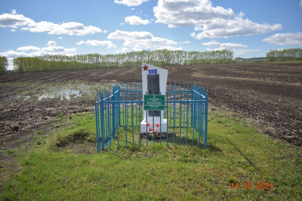 1. Захоронение.2. Композиционное и пространственное решение памятника.3. Габариты и объем памятника:- ограждение (2,0×2,0 м);- постамент (0,6×0,6×0,37 м);- стела (0,4×0,16×1,4 м).4. Конструктивные элементы, материал памятника:- ограждение – метал;- четырехгранный постамент – метал;- стела – метал.5. Декоративные элементы памятника:- объемная металлическая пятиконечная красная звезда в левом верхнем углу стелы. 6. Содержание информационной надписи на металлической пластине: «8 мая 1919 г. спите спокойно, дорогие товарищи, погибшие от рук палачей за благо народа. Вас нет, но на смену Вам придут миллионы трудящихся всего мира и закончат Вами начатое дело. Расстрелянные бандой Колчака Маркидонов Василий Егорович, Туркин Михаил Кириллович, Сладков Тимофей Никитович».