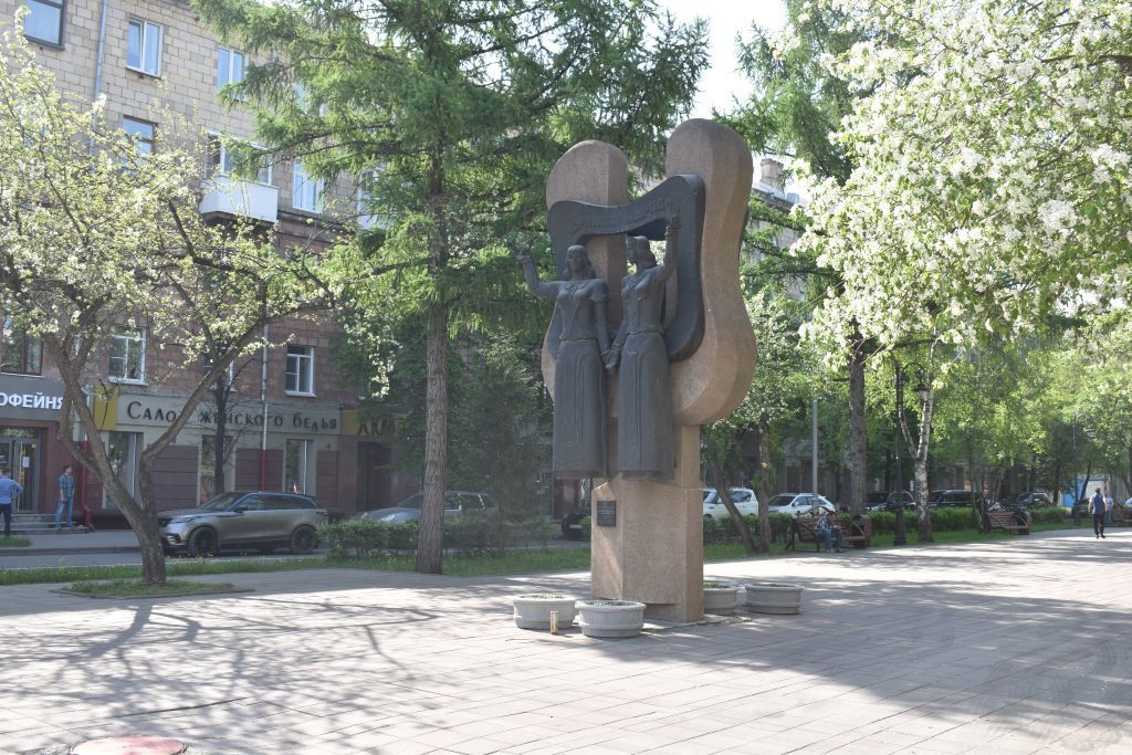 1. Местоположение памятника:-на продольной оси аллеи ул. Весенней, в начале аллеи.2. Общий объем и габариты памятника.- стилобат 1,7x1,7x0,2 м; - стела высотой 5,0 м; -3 скульптуры высотой 2,7 м.3. Конструктивные элементы, материал исполнения:- стилобат - бетон;- металлическая стела, покрытая каменной штукатуркой; - скульптуры двух женских (с лицевой стороны памятника) и шахтера (с обратной стороны памятника) - кованая медь;-ленты за скульптурами - чугун.4. Надписи на лентах: - «Дружба народов» с лицевой стороны и «Кемерово - Шалготарьян» с обратной стороны.