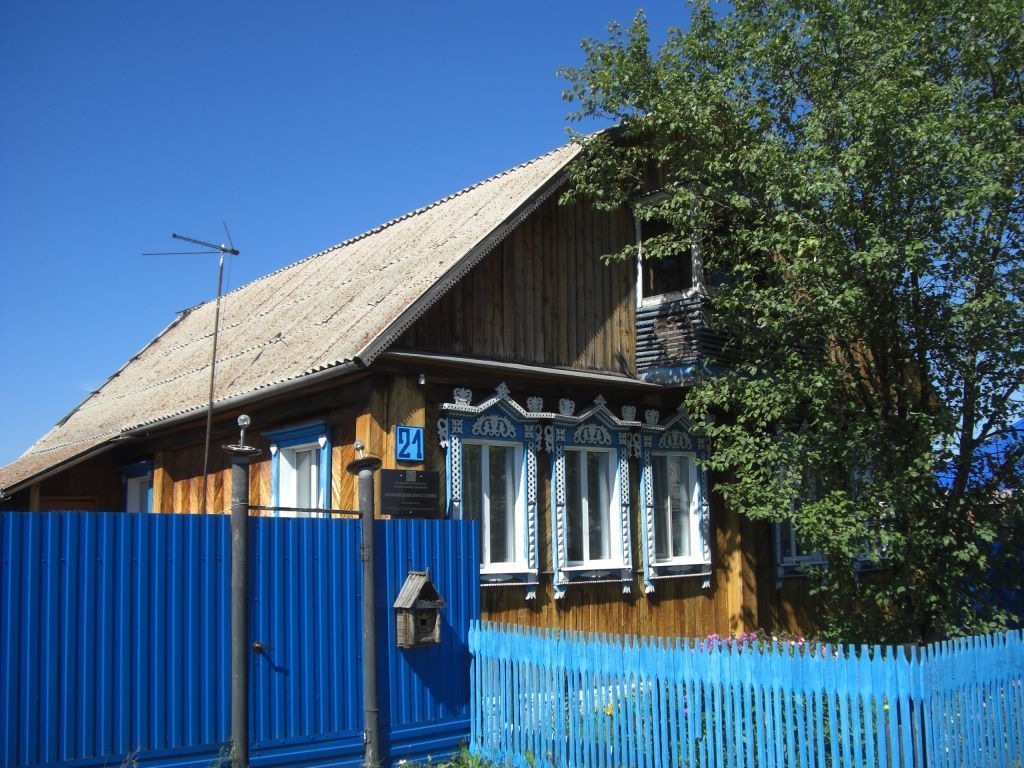 Деревянный жилой дом В.Н.Селезнева, построенный его отцом в 1915 году, с обильной пропильной и глухой резьбой с мотивами "плетенки", "розетки" и "короны"