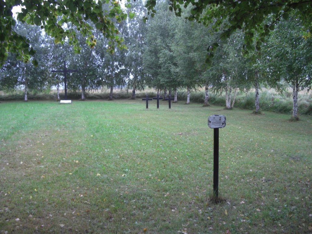 1. Архитектурно-композиционное и пространственное решение памятника:1.1. Прямоугольная площадка с установленными крестами. 1.2. В западной части места захоронения – большой крест, в центральной части (справа и слева от него) – две группы малых крестов по три в каждой.2. Габариты и объем памятника:2.1. Большой крест: высота – 3 м, ширина – 1,6 м. 2.2. Малые кресты: высота – 1,2 м, ширина – 0,9 м. 3. Архитектурно-конструктивные элементы, материал памятника:3.1. Кресты – металлические.3.2. Основание центрального креста – бетонная плита 0,8×0,6 м с информационной табличкой из мрамора, выполненной на русском и немецком языках: «Здесь покоятся военнопленные – жертвы второй мировой войны».4. Территория объекта:4.1. По периметру территории памятника устроена грунтовая насыпь и посажены 58 берез.5. Историческое функциональное использование мемориала.