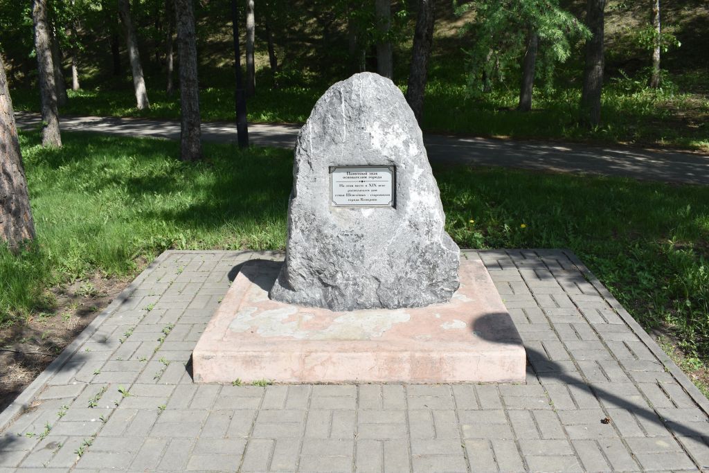 1. Местоположение: - северо-восточная часть парка. 1. Габариты и объем памятника: - стилобат (1,2x1х0,2 м); - памятный камень; (0,7x0,5x0,85 м); - мемориальная пластина (0,3х0,2 м). 2. Материал исполнения: - одноступенчатый стилобат из мраморной плитки; - памятный камень - глыбы песчаника; - мемориальная пластина - металл; 3. Содержание информационной надписи на пластине: «Памятный знак основателям города. На этом месте в XIX веке располагался дом семьи Шевелёвых - старожилов города Кемерово»