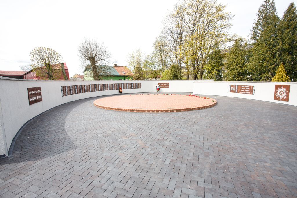 Мемориальный комплекс на братской могиле советских воинов, погибших при взятии города Хайнрихсвальде в январе 1945 года (арх. В.И. Попов, ск. И.М. Гершбург)