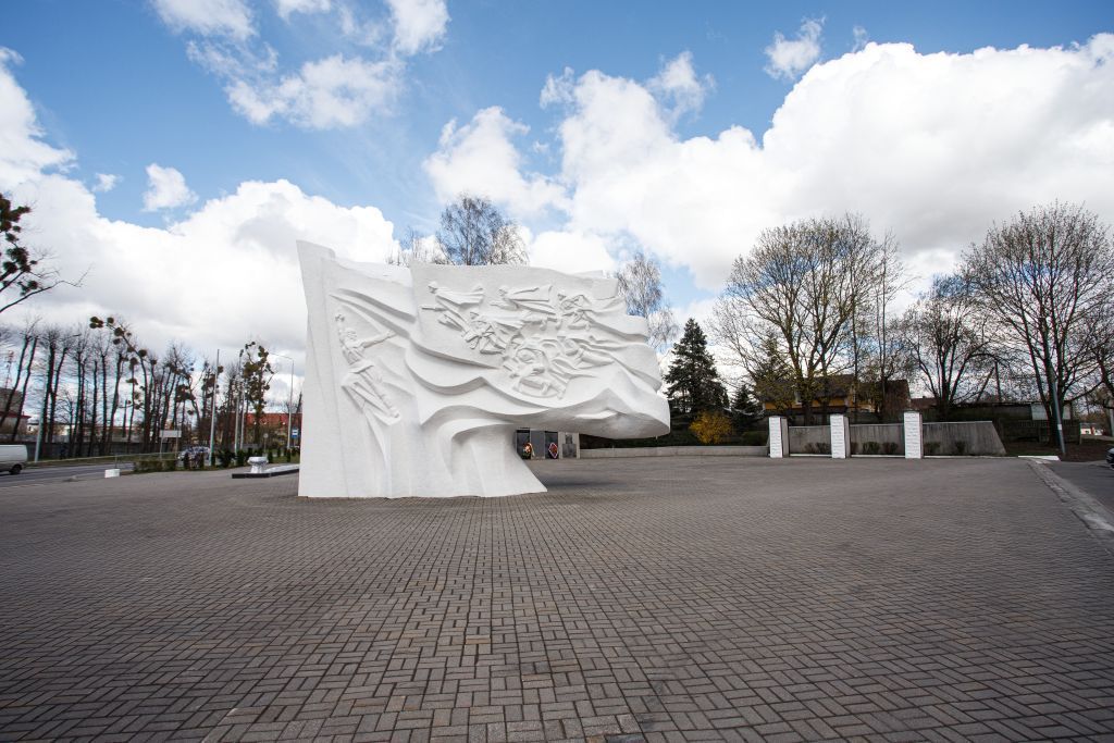 Мемориальный комплекс на братской могиле советских воинов, погибших при взятии города Нойхаузена в январе 1945 года (арх. А.В. Марков, ск. И.М. Гершбург)