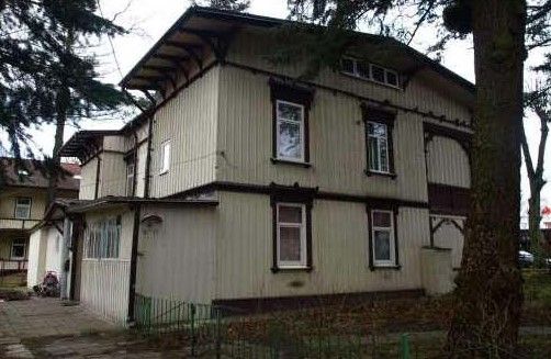 2.3.1Местоположение объекта.Объемно-пространственная композиция.Объект расположен вблизи от пересечения улицы Ленина и улицы Октябрьской, вдоль улицы Октябрьской. Объект является вторым в ряду зданий ансамбля.2.3.2Объемно- планировочное решение объекта.Здание прямоугольное в плане, продольная ось ориентирована по оси юго-восток – северо-запад. Состоит из основного объема и одноэтажного объема технического помещения с примыкающей крытой террасой, расположенных в центральной части юго-западного (дворового) фасада. Основной объём двухэтажный на низком цоколе, с низким чердачным помещением. Основной объем симметричен относительно поперечной оси, имеет угловые террасы/лоджии, расположенные в северном и восточном углах здания, на уровне первого и второго этажей соответственно; элементы террасы/балкона, расположенные в центральной части северо-восточного (главного) фасада здания на уровне первого и второго этажей соответственно; два боковых незначительных ризалита со стороны юго-западного (дворового) фасада.На северо-восточный (главный) фасад на первом и втором этажах выходят по два оконных проема и по два дверных проема, выходивших на террасу/балкон, располагавшихся в центральной части фасада. На юго-восточный и северо-западный (боковые) фасады на первом и втором этажах выходят по два оконных проема.На юго-западный (дворовый) фасад выходят в центральной части три оконных проема, из которых центральный является оконным проемом лестничной клетки, расположен незначительно ниже. Одноэтажный объем технического помещения имеет один оконный проем в верхней части. Крыша основного объема двухскатная с пологими скатами.Крыша одноэтажного объема технического помещения с примыкающей крытой террасой общая, двухскатная с пологими скатами.2.3.3Конструктивная схема здания.Описание несущих конструкций.Конструктивная схема здания: каркасная. Здание на невысоком кирпичном цоколе, с деревянным каркасом, деревянными обшитыми стенами. Угловые террасы/лоджии, расположенные в северном и восточном углах здания, на уровне первого и второго этажей соответственно, встроены в систему несущих конструкций здания, выполнены на опорных вертикальных столбах, горизонтальных балках (брусьях), диагональных прямых и криволинейных брусьях. Одноэтажный объём технического помещения с примыкающей крытой террасой, расположенный в центральной части юго-западного (дворового) фасада, с деревянным каркасом, деревянными обшитыми стенами. Крытая терраса, примыкающая к одноэтажному объёму технического помещения, выполнена на опорных деревянных столбах, горизонтальных брусьях, подкосах. Крыша основного объема имеет широкие неподшитые свесы (карнизные и фронтонные свесы), карнизный свес со стороны юго-западного (дворового) фасада незначительный. Свесы выполнены на выпусках элементов стропильной системы (стропильных ног и прогонов) с подкосами, фронтонных стропилах.Крыша одноэтажного объема технического помещения с примыкающей крытой террасой имеет широкий неподшитый фронтонный свес и незначительные карнизные свесы. Свесы выполнены на выпусках элементов стропильной системы (стропильных ног и прогонов) с подкосами, фронтонных стропилах. 2.3.4Композиция и архитектурно-художественное оформление фасадов.Фасады в горизонтальной плоскости разделены межэ