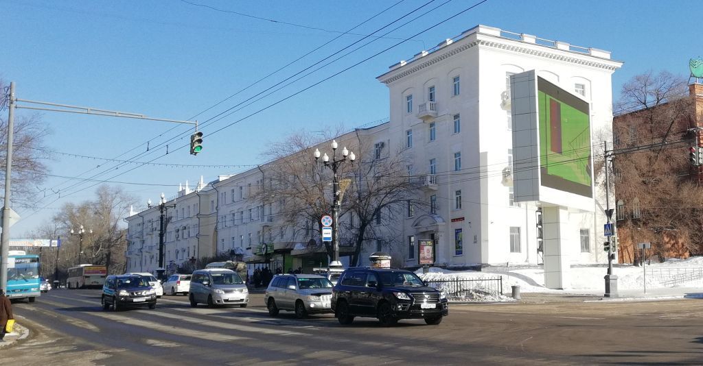 Градостроительные характеристикиМестоположение здания –на северо-восточной стороне площади им. В.И. Ленина на перекрестке улиц Карла Маркса и Пушкина, в ряду застройки ул. Карла Маркса и ул. Пушкина.Секторы визуального раскрытия, наилучшие точки восприятия здания - наилучшее восприятие объекта с площади им. В.И. Ленина.Стилистическая и архитектурно-художественная характеристикаЗдание в характерном для 1950-х годов стиле советской неоклассики.Объемно-пространственная композиция здания на дату завершения постройки 1956 года, конфигурация, габаритные размеры в плане, высотные отметки карнизов, аттиковЗдание прямоугольное в плане, состоит из двух объемов. Вытянутый объем по ул. Карла Маркса – 4-этажный, с подвальными помещениями под зданием, прямоугольный в плане состоит из двух равноценных корпусов (46,5 х 13,4 м, 47,8 х 13,4м) разделенных сквозным проездом. Угловой объем – 5-этажный, с подвальными помещениями, квадратный в плане (15,45 х 15,44 м), 5-этажный формирует северный угол площади им. В.И. Ленина на пересечении ул. Пушкина с ул. Карла Маркса.Крыша на дату завершения постройки – 1956 годКрыша– четырехскатная на башенном объеме, двухскатная крыша с вальмой вместе примыкания к башенному объему, на протяженном объеме, разделенная на три части поперечными несущими стенами.Кровля– металлическая, гладкая, фальцевая.Конструкции и материалыБезкаркасная конструктивная схема с продольным и поперечным расположением несущих стен. Материал стен – кирпич.Композиция и архитектурно-художественное оформление фасадов здания, местоположение, форма и размер проемов, характер обработки фасадной поверхности и цветовое решениеФасады, за исключением дворовых фасадов, декорированы в классическом стиле. На обеих частях главного северо-западного фасада декором акцентированы входные группы. Торцевой северо-восточный фасад имеет похожий декор, за исключением количества и местоположения оконных проемов. Фасады башенного 5-этажного объема акцентированы пилястрами с декоративными шейками и лопатками, декоративными розетками и гирляндами, завершены карнизом большого выноса с модульонами. Главный северо-западный, за исключением входных групп, отмечен междуэтажными поясами, гладким фризом и венчающим карнизом. Фасады завершены аттиками. Протяженная часть главного северо-западного фасада акцентирована высоким, высотой в три этажа сквозным арочным проездом.Главный северо-западный фасад здания имеет асимметричную композицию. Высотным акцентом служит правая, угловая, неширокая часть, возвышающаяся на один этаж над основной и вытянутой вдоль улицы частью фасада. Слева две протяженные, абсолютно симметричные части фасада, соединенные между собой западающей плоскостью с высокой полуциркульной аркой, а к высотной части примыкают через узкую, западающую плоскость фасада в два окна. Завершен фасад двумя аттиковыми стеночками с пинаклями на протяженной части фасада, угловыми аттиками, между которыми расположены два прямоугольных аттика на башенной части.Торцевой юго-западный фасад, обращенный на площадь им. В.И. Ленина, имеет центрально-симметричную композицию, повторяет все элементы правой повышенной части главного северо-западного фасада. Завершен угловыми аттиками, между которыми расположены два прямоугольных аттика.Торцевой северо-восточный фа