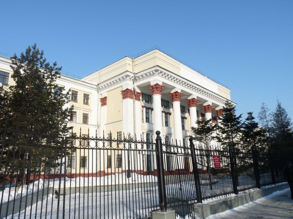 Предметом охраны являются:Местоположение здания:в центральной части города, на огороженном участке, ограниченном улицами Серышева, Некрасова и Герасимова, отдельно стоящего с отступом от красной линии улицы Серышева. Главным вытянутым фасадом ориентировано на улицу Серышева, боковыми поставлено на красные линии улиц Некрасова и Герасимова. Стилистика здания: советская неоклассика с использованием ордерной системы в объемно-пространственном решении и штукатурном декоре фасадов.Объемно-пространственная композиция здания: трех-четырехэтажного с цокольным этажом и подвалом, Ш-образного в плане, составленная основным объемом, вытянутым вдоль улицы Серышева, и тремя перпендикулярно расположенными крыльями, из которых один поставлен по оси дворового фасада основного объема, два других вытянуты вдоль улиц Некрасова и Герасимова.Композиция главного юго-восточного симметричного фасада, составленная из трех основных частей: средней трехэтажной выступающей части в пять световых осей, акцентированной массивным портиком в интерпретации большого коринфского ордера, и двух протяженных четырехэтажных крыльев с ризалитами на флангах. Местоположение и габариты проемов, декоративное оформление средней трехэтажной выступающей части главного фасада: - равномерное членение крупными тройными окнами в широких прямоугольных проемах (окна узкие, среднее в два раза шире двух боковых) окна верхнего этажа очень высокие, двухсветные. На первом этаже, по оси - дверной проем главного входа;- прямые пилястры большого коринфского ордера в простенках (по осям колонн портика); двойные пилястры на флангах;- первоначальные двухрожковые светильники по оси пилястр, в уроне верхней линии оконных проемов;- рамочные профилированные наличники оконных проемов двух нижних этажей;- узкие импосты на третьем этаже, разделяющие оконные блоки ниж-ней части тройных окон, украшенные трехчетвертными колонками коринфского ордера, по бокам проема - колонки в четверть круга;- оформление широкой перемычки (разделяющей нижнюю и верхнюю части проема) в виде антаблемента с декоративной раскреповкой посередине;- декоративные башенки (пинакли) над антаблементом по оси полуколонок на фоне сплошного остекления, разделенного по горизонтали на четыре части;- небольшие балкончики, расположенные по оси каждого проема на третьем этаже (по ширине среднего оконного блока) на декоративных кронштейнах, поддерживающих балконную плиту с торцами, профилированными в форме карниза, со сплошным бетонным ограждением с чешуйчатым рельефным рисунком; - сплошной подоконный карниз, объединяющий оконные проемы третьего этажа, обрывающийся на балконах и пилястрах в простенках; - портик из шести массивных круглых колонн поставленный на высокую площадку-стилобат с лестничными спусками в шесть ступеней по ширине трех сторон стилобата; антаблемент портика, составленный участками разорванного архитрава с четырехступенчатой профилировкой над \"колоколом\" классических коринфских капителей колоннады, многоступенчатым фризом, сверху украшенным лепным декором, и в завершении профилированным карнизом большого выноса, поддержанным декоративными модульонами в форме трехступенчатого зубца; декорированный кессонный потолок портика, завершенный высоким прямоугольным аттиком, имеющим 
