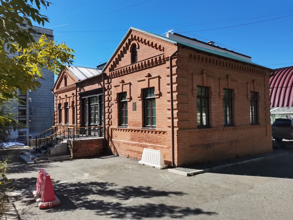 Градостроительная характеристика отдельно стоящего здания, расположенного в глубине квартала, ограниченного улицами Ким Ю Чена, Пушкина, Шеронова и Амурским бульваром, на участке с уклоном рельефа в юго-западную сторону, главным протяженным юго-восточным фасадом ориентированного на ул. Ким Ю Чена и с северо-западным брандмауэром.Объемно-пространственная композиция одноэтажного здания с цокольным этажом под юго-западной частью, состоящего из двух почти идентичных прямоугольных в плане блоков под высокими двускатными крышами, расположенных торцами к ул. Ким Ю Чена, параллельно друг к другу, соединенных первоначально заглубленным со стороны главного фасада квадратным в плане объемом, крытым плоской крышей с выносом над западающим крыльцом главного входа.Стилистика здания, построенного в стиле эклектики с элементами декора, свойственного классицизму, в лицевой кладке фасадов из красного лицевого кирпича.Крыша. Конфигурация, габариты, высотные отметки сложной крыши: над фланговыми объемами двускатной чердачной по деревянным наслонным стропилам, со стороны главного фасада щипцовой, над средним объемом плоской совмещенной; металлическая кровля.Композиция главного юго-восточного фасада.Почти симметричная композиция юго-восточного фасада, составленная фланговыми частями одной ширины с идентичными высокими треугольными фронтонами в завершении и более узкой симметричной средней частью главного входа, выделенной высоким крыльцом, состоящей из первоначального нависающего над проемом фриза и позднего декоративного деревянного витражного заполнения проема с двустворчатой дверью. Правая фланговая часть фасада одноэтажная симметричная, в две световых оси. Левая часть - асимметричная за счет различных габаритов и неравномерного размещения проемов, с цокольным этажом в приямке, раскрытом к юго-западу по рельефу, по первому этажу в три световых оси, по цокольному - в две световых оси.Местоположение, габариты, конфигурация проемов главного юго-восточного фасада.Оконные проемы на левой фланговой части фасада:- в уровне первого этажа три оконных проема вертикально вытянутые с клинчатыми перемычками, из которых два идентичных более широких расположены слева, одно узкое отодвинуто к правому краю;- в уровне цокольного этажа два широких низких оконных проема с лучковыми перемычками, размещенные не в створе с окнами первого этажа. Два оконных проема на правой фланговой части фасада, по габаритам и конфигурации аналогичных двум окнам, расположенным на первом этаже слева левой фланговой части фасада.Проемы крупных слуховых оконцев в тимпанах фронтонов с арочными перемычками, обрамленными полукруглыми наличниками. Композиция бокового северо-восточного фасада.Асимметричная композиция северо-восточного фасада в три световых оси, с неравномерным размещением идентичных оконных проемов, из которых два сдвинуты к левому краю. Асимметричная композиция юго-западного бокового фасада, составленная расположением широко расставленных вертикально вытянутых прямоугольных с клинчатыми перемычками оконных проемов первого этажа, широким низким оконным проемом с лучковой перемычкой цокольного этажа и дверным проемом дополнительного входа, сдвинутым к правому краю фасада.Декоративное оформление главного юго-восточного и боков