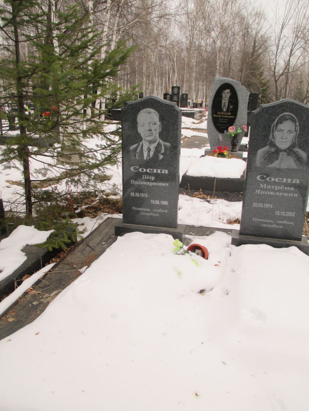 Предметом охраны являются:существующее местоположение: на городском кладбище \"Старт\", в квартале почетных захоронений, приблизительно в 22 метрах от начала аллеи, на северо-западной стороне;захоронение (останки);обозначение захоронения надмогильным сооружением; информационная надпись, содержащая сведения о:- фамилии и имени погребенного: Сосна Пётр Поликарпович;- годах жизни: 05.10.1910–19.08.1986;- деятельности погребенного: первостроитель г. Комсомольск-на-Амуре.