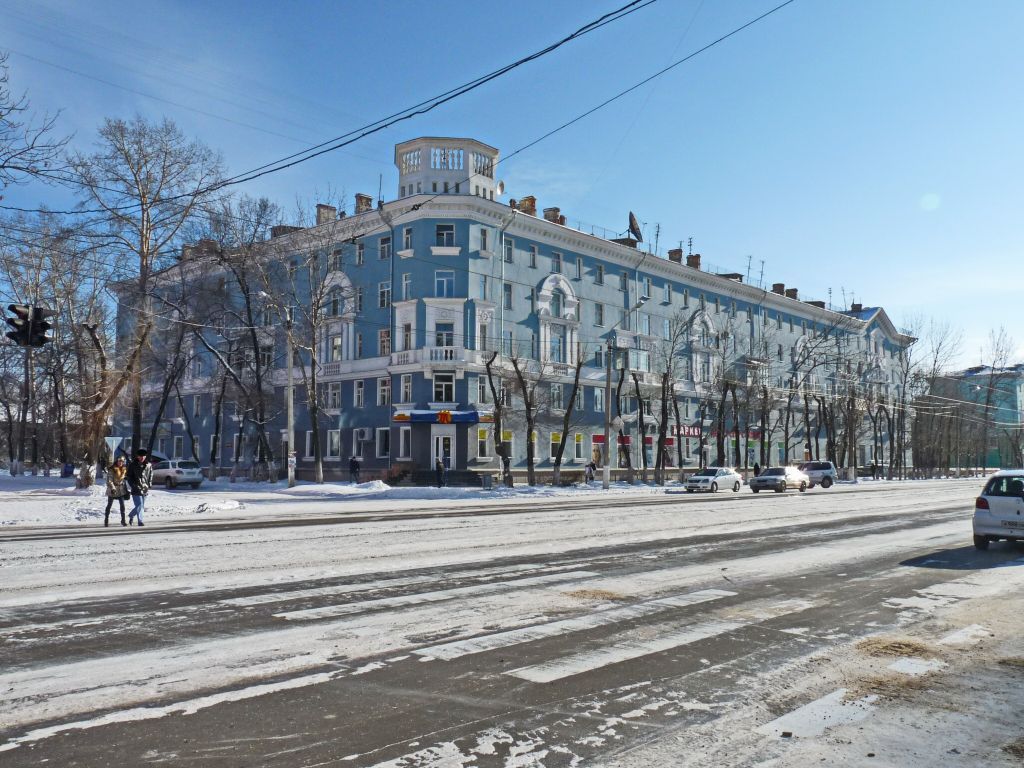 1.Местоположение и градостроительные характеристики здания.Местоположение отдельно стоящего здания на угловом участке на пересечении просп. Мира и ул. Красноармейской, в ряду пятиэтажной застройки просп. Мира, в квартале, образованном просп. Мира, ул. Комсомольской, Красноармейской и Летчиков.Роль локального архитектурно-градостроительного акцента на перекрестке просп. Мира и ул. Красноармейской.Секторы наилучших видовых раскрытий здания и его фрагментов с просп. Мира и с перекрестка просп. Мира и ул. Красноармейской.2.Объемно-пространственная композиция, стилистика здания.Объемно-пространственная композиция многоквартирного дома, 5-этажного с подвалом, Г-образного в плане, составленного двумя крыльями: крылом, сильно вытянутым вдоль просп. Мира и более коротким - со стороны ул. Красноармейской, соединенными угловым выступающим башенным объемом. Объемно-пространственная композиция башенного объема, составленного пятью гранями – тремя широкими средними и двумя угловыми узкими, имитирующего объем восьмигранной башни, врезанной в угол здания, завершенной восьмигранным бельведером. Высотные отметки венчающего карниза и бельведера.Конфигурация, габариты и высотные отметки двускатной чердачной крыши крыльев здания с вальмой на торцах.Структура членений фасадов - уличных и дворовых, являющаяся неотъемлемой частью объемно-пространственной композиции здания: горизонтальные членения фасадов, зрительно объединяющие объемы крыльев – венчающий карниз, карниз междуэтажный, отделяющий два нижних этажа, кордон цоколя; вертикальные членения фасадов – крупные элементы декоративного оформления, акцентирующие композиционные оси фасадов.Стилистика здания - советская неоклассика, свойственная периоду 1950-х годов. Характер обработки и цветовое решение фасадной поверхности - гладко оштукатуренные и окрашенные в светлые тона стены верхних трех этажей; рустованные стены нижних этажей, окрашенные в более темные тона; выделенные белым цветом декоративные элементы; оштукатуренные и окрашенные в темный тон цоколь и ограждение крылец.3.Композиция главного (юго-западного) фасада. Композиция главного юго-западного фасада, ориентированного на проспект Мира, асимметричная, образованная протяженной основной частью и на левом фланге тремя гранями углового башенного объема.Асимметричная композиция основной протяженной части фасада, составленная четырьмя симметричными участками, выделенными по осям декором, из которых два средних участка идентичны, в семь осей проемов, левый фланговый меньшей ширины, в шесть осей проемов, правый фланговый участок в семь осей проемов с щипцовым треугольным фронтоном по средней оси и иным, более активным декоративным оформлением.Местоположение водосточных труб, отделяющих участки основной протяженной части фасада.Местоположение, габариты, форма балконов - шесть балконов, небольших, прямоугольных в плане, расположенных на третьем этаже парами с двух сторон от водосточных труб, один аналогичный балкон – на правой фланговой оси проемов. Местоположение, габариты, форма проемов: - оконные и дверные балконные проемы на четырех верхних этажах, прямоугольные, вертикально вытянутые, без обрамлений, равномерно расположены; проемы, размещенные с двух сторон от осевых проемов каждого участка, значительно 