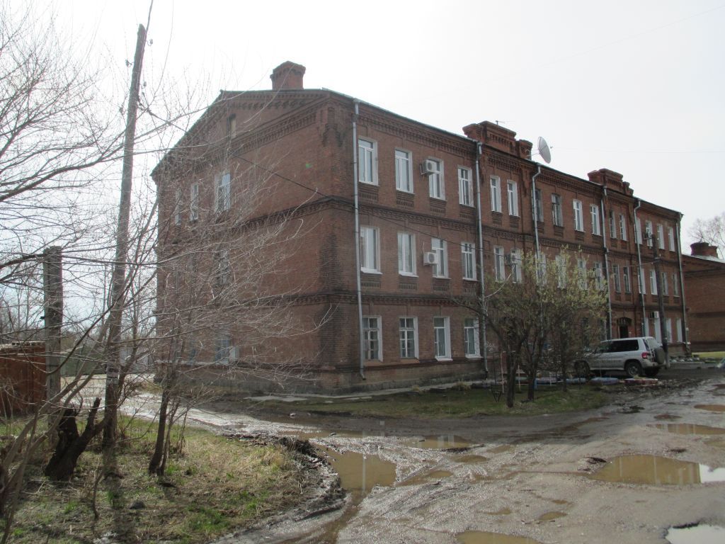 Местоположение здания в ряду застройки ул. Ясной, рядом с двухэтажным зданием бывшей казармы флотского экипажа Амурской речной флотилии, расположенном на угловом участке, на пересечении улиц Ясной и Осенней, имеющим аналогичное планировочное, объемно-пространственное решение и архитектурно-художественное оформление фасадов. Главным северо-западным протяженным фасадом ориентировано на ул. Ясную.Объемно-пространственная композиция здания, трехэтажного, прямоугольного в плане с двумя выступами симметрично расположенных широких ризалитов на главном и дворовом фасадах; поставленного на кирпичный цоколь с гранитным основанием, имеющим переменную высоту за счет понижения рельефа в северо-восточном направлении; с чердачной двухскатной стропильной крышей, с фронтонами в завершении торцевых фасадов, с активным силуэтом аттиков ризалитов, высоких кирпичных печных труб и труб вентиляционных шахт. Этажи по всем фасадам выделены декоративными карнизами - венчающим, междуэтажным и кордона цоколя, проходящего по нижней линии окон первого этажа. Углы здания и ризалитов акцентированы огибающими лопатками.Конструктивная система здания: несущие наружные и внутренние стены. Кладка стен выполнена с лицевой верстой из керамического кирпича на известково-песчаном растворе. Крыша чердачная, двускатная с деревянной стропильной системой.Планировочная структура здания: два подъезда с двумя лестничными клетками и с первоначальным расположением квартир.Стилистика оформления фасадов: эклектика с элементами декора в лицевой кладке фасадов, свойственными классицизму и фрагментарно модерну.Композиция главного северо-западного симметричного фасада, составленная: тремя почти равными четырехосными западающими частями, разделенными двумя ризалитами небольшого выноса на втором и третьем этажах в две световых оси, на первом - с широким дверным проемом главного входа; членением по вертикали карнизами - венчающим, двумя междуэтажными и кордоном; расположением и габаритами оконных и дверных проемов.Композиция дворового юго-восточного симметричного фасада, составленная: тремя почти равными западающими частями (из которых средняя в пять световых осей, фланговые в четыре), разделенными двумя одноосными ризалитами большого выноса; членением по вертикали карнизами - венчающим, двумя междуэтажными и кордоном цоколя; расположением и габаритами оконных проемов - в средней западающей части проемы расположены симметрично, средний проем осевой, пары фланговых немного сдвинуты к ризалитам, на боковых частях четыре проема расположены парно. Композиция идентичных торцовых фасадов, завершенных треугольными фронтонами, в три световых оси, составленная несимметричным расположением различных по ширине проемов и их габаритами (проемы на юго-западном фасаде сдвинуты к правому краю, на северо-восточном - к левому краю); членением по вертикали карнизами - венчающим, междуэтажными и кордоном. Габариты и декоративное оформление оконных проемов:оконные проемы прямоугольные, различной ширины, вертикально вытянуты, с клинчатыми перемычками, в нижней средней части слегка выступающими из плоскости стены, выделенными высоким замком. Подоконное поле на втором и третьем этажах декорировано трехступенчатой подоконной полкой над нишей с рядом сухариков.Н