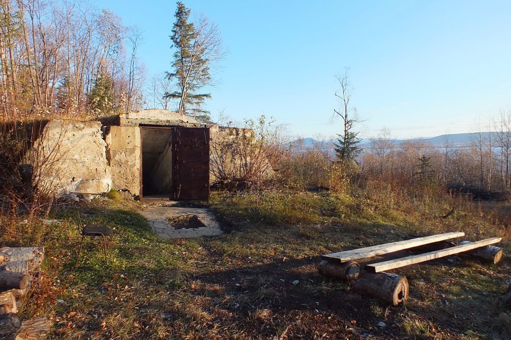 1.Объемно-пространственное и планировочное решение территории:местоположение сооружения в лесном массиве на южном склоне сопки, около 700 м северо-восточнее здания по адресу: г. Николаевск-на-Амуре, ул. Советская, д. 233;историческое планировочное решение территории, ее ландшафтные характеристики.2.Объемно-пространственное и планировочное решение:фортификационное сооружение, встроенное в юго-западный склон сопки, почти полностью скрытое под грунтовой обваловкой, состоящее из трех основных блоков, расположенных на разных вертикальных отметках, соединенных между собой и с поверхностью земли одномаршевыми прямоугольными в плане лестничными блоками;габариты, конфигурация, высотные отметки основных и лестничных блоков;юго-западный блок, подземный, состоящий из двух объемов: основного крупного квадратного в плане и примыкающего к нему с северо-восточной стороны узкого Т-образного объема, образующего коридор, соединяющегося с лестницами, ведущими в два других блока и на поверхность земли;планировочная структура основного объема юго-западного блока, разделенного продольными стенами на три равных части, где перегородками выгорожены отдельные помещения;местоположение, конфигурация дверных и технологических проемов в капитальных внутренних стенах;местоположение, габариты лестничного блока главного входа в сооружение, ведущего на поверхность земли, примыкающего к коридору с северо-западной стороны;портал лестничного блока в виде выступающей стены с треугольным завершением, прорезанной прямоугольным вертикально вытянутым дверным проемом, и двух фланговых, слегка заглубленных подпорных трапециевидных стенок;бетонное покрытие площадки перед входом в лестничный блок;лестничный блок, соединяющий коридор с юго-восточным блоком;юго-восточный блок, состоящий из двух объемов: основного, частично скрытого в грунте, и пристройки с односкатной крышей, имеющей дверной проем в северо-западной стене с небольшим открытым лестничным маршем выхода на поверхность земли, а также оконный проем в юго-восточной стене, защищенный с внешней стороны козырьком-кожухом с вмурованной металлической трубой и фрагментом бруса с решеткой;лестничный блок, соединяющий коридор с северо-восточным блоком;северо-восточный блок, составленный из двух прямоугольных в плане объемов, вытянутых в северном направлении, имеющих разные габариты и высоту; основной объем – крупный, более высокий, другой объем – значительно меньших размеров, примыкает к основному объему с северо-западной стороны;местоположение, конфигурация, габариты дверных проемов (из 20 проемов два имеют наклонные четверти);дверные блоки главного входа и ведущие из коридора в юго-западный и северо-восточный блоки – металлические с рычажным задраиванием (запорами), с рамами из профиля, резиновыми уплотнителями.3.Конструкция и материал сооружения:стены и перекрытия из монолитного железобетона;перекрытия юго-западного блока – сводчатые, остальных блоков – плоские.4.Местоположение, объемно-пространственное решение вспомогательных сооружений:технологическая площадка № 1, расположенная в 20 м ниже по рельефу от портала лестничного блока, округлой (грушевидной) в плане формы, обвалованная грунтом, состоящая из открытой и закрытой частей;открытая часть площадки со ступенчатым бетонным ос