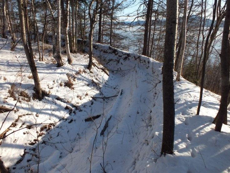1.Местоположение: на южном склоне Преображенской сопки (высота над ур. м. – 95 м), у распадка безымянного ручья, связанной с нижней дорогой подъездом протяженностью 283 м.Природно-ландшафтные характеристики территории.Дорожно-тропиночные связи между сохранившимися сооружениями.2.Планировочная структура стрелковой позиции, составленная местоположением, планировкой, габаритами сохранившихся полностью либо фрагментарно фортификационных объектов: открытыми огневыми сооружениями ближнего боя (окопы); охранительными сооружениями (убежища); открытыми ходами сообщения.Объемно-пространственная структура стрелковой позиции, занимающей участок в верхней части склона, обозначенная напольным и двумя боковыми фасами (фланками).Напольный фас и правый (западный) фланк обозначены на местности С-образным стрелковым окопом. Пеленг главной оси – 45 град., оси горжи – 100 град.(Окоп – углубление в грунте, предназначенное для улучшения условий стрельбы и защиты военнослужащего, личного состава подразделения, вооружения и военной техники от поражения огня противника различными видами вооружения и предназначенное для стрельбы из него стрелковых войск (пехоты).3.Окоп стрелковый – С-образной формы, полного профиля с банкетом, растянутый от своей западной до восточной оконечности по склону сопки, следующей его рельефу, имеющий излом в своей центральной части. Хорошо читается на местности. Банкет выложен диким камнем.(Банкет или стрелковая ступень в фортификации – дополнительная насыпь или ступень с внутренней стороны слишком высокого для человека бруствера для размещения на ней стрелков, ведущих огонь поверх бруствера).4.Укрытие – развал деревянного венчатого сооружения, расположенного в углу открытого хода сообщения и стрелкового окопа.5.Укрытие – блиндированное венчатое с обваловкой сооружение, расположенное в стрелковом окопе, играющее роль примкнутого траверса (конструкция завалена грунтом).(Траверс – элемент открытых фортификационных сооружений (траншей, ходов сообщения и т.п.) в виде поперечного вала, который располагают на протяженных прямолинейных участках для прикрытия входов, защиты от рикошетов и т.п.; примкнутый траверс – траверс, огибаемый траншеей или ходом сообщения только с одной стороны).6.Окоп стрелковый – прямой формы, полного профиля с банкетом, расположенный по изгибу склона между открытыми ходами сообщения. Окоп соединяет укрытия.Бруствер окопа усложнен банкетом.Ходы сообщения открытые – прямые и криволинейные, соединяющие стрелковые окопы и укрытия между собой в единую функциональную структуру.Ход сообщения, расположенный в нижней части стрелковой позиции, параллельно стрелковому окопу, и оканчивающийся тупиком под бруствером стрелкового окопа, возможно имел крытое сообщение с укрытием.7.Укрытие – блиндированное венчатое с обваловкой сооружение, расположенное в завершении стрелкового окопа.Конструкция завалена грунтом.