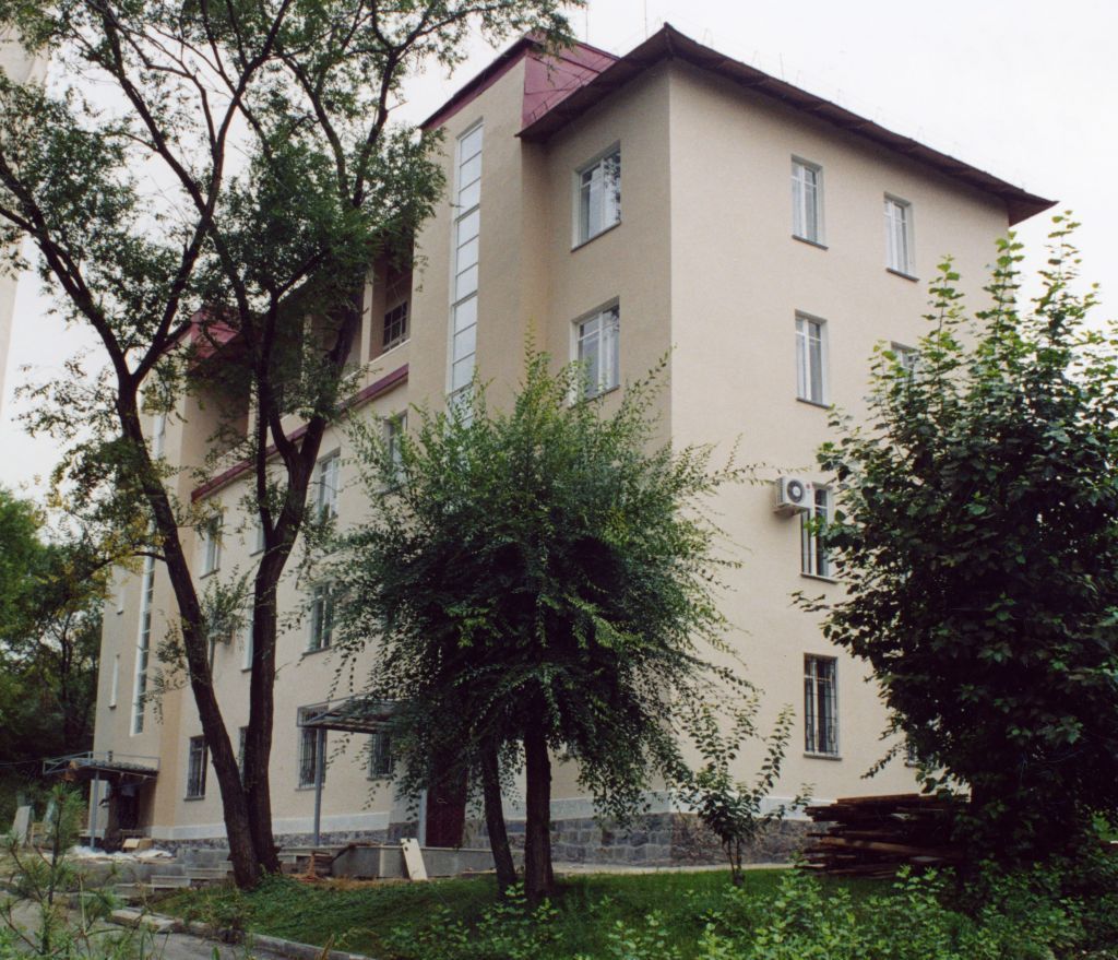 Градостроительная характеристика здания, расположенного обособленно в непосредственной близости к краевому парку, на небольшом выровненном участке на спуске улицы Шевченко к парку стадиона им. Ленина, обращенного к улице узким торцевым фасадом. Объемно-пространственная композиция прямоугольного в плане (31 м х 9,8 м), 4-хэтажного здания с невысоким бутовым цоколем, акцентированная с северо-западного фасада двумя возвышающимися над основным объемом ризалитами с вертикальным ленточным остеклением и глубокой лоджией в средней части 4-го этажа, сформированная соотношением объемов, контрастом западающих и выступающих плоскостей, форм остекления.Конфигурация, габариты чердачной вальмовой крыши, высотные отметки конька и лестничных клеток.Стилистика здания: конструктивизм.Характер обработки наружных стен, оштукатуренных и окрашенных. Композиция главного северо-западного фасада, составленная простыми прямоугольными плоскостями: горизонтальным прямоугольником плоскости основного объема (второй план), пересеченным на переднем плане двумя вертикалями лестничных ризалитов, подчеркнутыми ленточным остеклением по оси, акцентированной в средней верхней части заглубленной лоджией 4-го этажа.Ахитектурно-художественное оформление главного фасада на дату постройки, в том числе: три опоры квадратного сечения, поддерживающие свес кровли над лоджией главного фасада; глухой штукатурный экран ограждения лоджии.Композиция юго-восточного фасада, характеризующаяся регулярным в 8 осей размещением на всех этажах одинаковых оконных проемов на плоском, лишенном декоративных элементов фасаде.Композиция юго-западного торцевого фасада, сформированная двумя рядами узких оконных проемов в средней части плоского фасада.Габариты, форма, местоположение проемов, рисунок заполнений: два прямоугольных дверных проема в ризалитах; прямоугольные двухстворчатые оконные проемы, размещенные регулярно в 8 осей на всех этажах юго-восточного фасада, в 1 ось на фланговых частях и в 4 оси на трех нижних этажах северо-западного фасада; узкие двустворчатые оконные проемы, размещенные на торцевых фасадах в 2 оси в средней части юго-западного и в 1 ось на северо-восточном; четыре высоких, с фрамугами проема, в том числе с балконной дверью, выходящих на лоджию 4-го этажа;Конструктивная схема: железобетонный каркас с двумя рядами внутренних колонн, с заполнением наружных стен шлакобетоном, железобетонные перекрытия.Параметры, конструкция 3-хмаршевых лестниц из сборных ступеней по железобетонным косоурам; металлическая решетка лестничных маршей из стальных стоек круглого сечения, соединенных на клепках двумя горизонтальными полосами, и прикрепленных к полосам между стоек вертикальных круглых стержней с заостренным, заточенным на три грани верхним концом.Пространственно-планировочная структура интерьера в капитальных стенах: планировка галерейного типа с галереей, размещенной между двумя лестничными клетками, на первых трех этажах вдоль юго-восточного фасада, на 4-ом этаже вдоль северо-западного фасада.