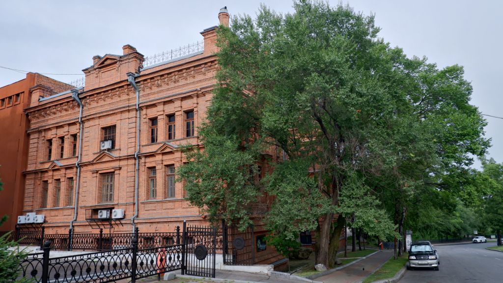 Градостроительная характеристика здания, участвующего в формировании застройки улицы Шевченко.Объемно-пространственная композиция 3-хэтажного с высоким цокольным этажом, Н-образного в плане здания.Конфигурация, габариты чердачной многоскатной крыши с фальцевой гладкой металлической кровлей.Композиция и архитектурно-художественное оформление фасадов, выполненных в духе эклектики с элементами классицизма, сложившееся в начале XX века, в том числе:- центрально-симметричная композиция главного, северо-восточного фасада, в семь осей оконных проемов, составленная средней, западающей частью в пять осей оконных проемов, двумя фланговыми одноосными ризалитами, завершенными мощными аттиками с выделенными треугольными ложными фронтонами, и примыкающим справа, со значительным отступом на дальний план, небольшим, одноэтажным пристроем тамбура главного входа в одну ось, фланкированным широкими рустованными лопатками, завершенным двумя парапетными тумбами с решеткой ограждения между ними;- симметричная, трехчастная композиция юго-восточного фасада, образованная осевым ризалитом с высоким аттиком, завершенным треугольным фронтоном между двух парапетных тумб, и двумя зеркально симметричными частями, по три оси оконных проемов, выполненных в едином оформлении; - композиция северо-западного фасада, идентичная композиции юго-восточного фасада за следующим исключением: наличие по средней оси на переднем плане одноэтажного пристроя входного тамбура, в правой части на втором этаже вместо прямоугольных оконных проемов арочные ниши. - юго-западный фасад полностью скрыт поздней пристройкой.Декоративное оформление фасадов, выполненное в лицевой кирпичной кладке красного кирпича, в том числе:- междуэтажные профилированные карнизы, карниз над вторым этажом раскрепован фланговыми лопатками ризалитов главного, северо-восточного фасада и дополнен треугольными сандриками над оконными проемами по четным осям на юго-восточном и северо-западном фасадах;- высокий венчающий карниз с декоративными кронштейнами и рядом ширинок в основании и гладкий фриз, выделенный массивной полкой над окнами второго этажа;- подоконные полки второго и третьего этажа, единые в средней части главного фасада и для скомпонованных по три оконных проемов на юго-восточном и северо-западном фасадах, рельефное оформление подоконного поля первого этажа;- оформление первого этажа и плоских лопаток в простенках дощатым рустом;- высокие клинчатые перемычки с выделенным замковым камнем в завершении оконных проемов первого этажа юго-восточного и северо-западного фасадов;- узкие простенки между окнами первого этажа на главном, северо-восточном фасаде, выполненные в виде дорической полуколонны;- оформление ризалитов главного, северо-восточного фасада, представленное глубокой горизонтальной нишей на первом этаже, высокой, в два этажа арочной нишей с выделенным замковым камнем в рамочном наличнике с трехчастными окнами - прямоугольным на втором этаже и арочным на третьем. Вертикальные кирпичные импосты, членящие окна, декорированные полуколоннами из тесаного кирпича полукруглыми в плане на втором этаже и муфтированными, прямоугольными в плане, на третьем. Высокие массивные прямоугольные аттики, венчающие ризалиты, с угловыми тумбами в виде вазонов со сферичес