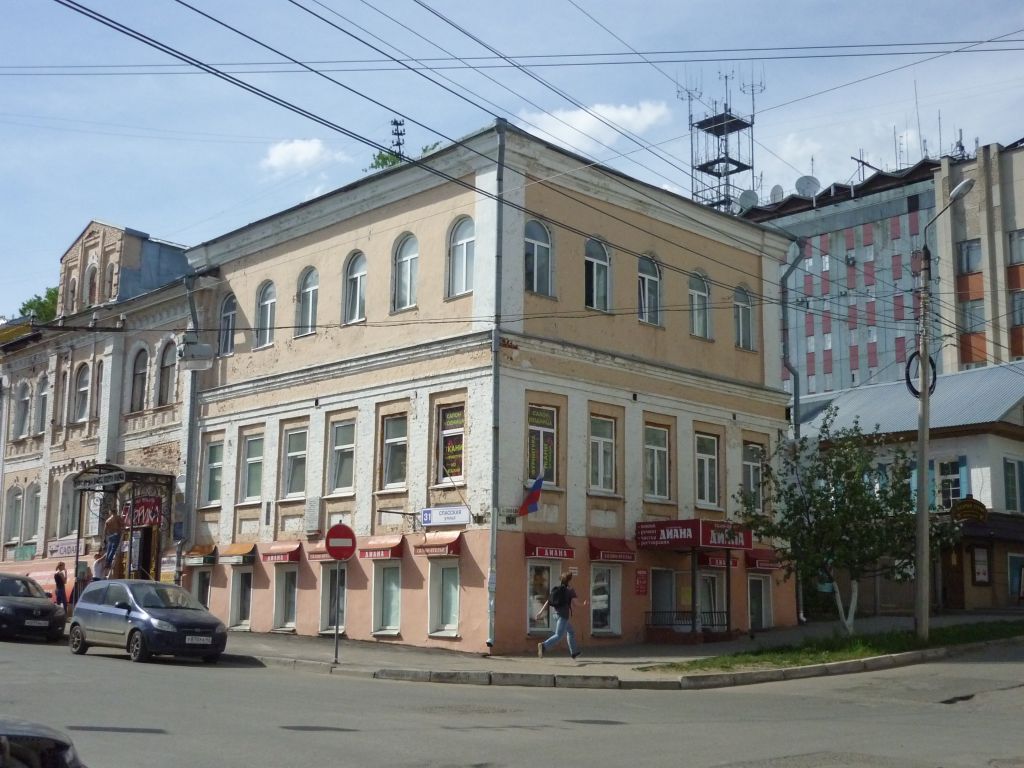 1. Градостроительные характеристики здания: местоположение здания на пересечении улиц Спасской и Свободы, по их красным линиям.2. Объемно-пространственная композиция здания: 2.1. Прямоугольное в плане, состоящее из двух зданий: одноэтажное на высоком цоколе здание 1 (далее - здание 1); двухэтажное на высоком цоколе с мезонином здание 2 (далее - здание 2).3. Композиция и архитектурно-художественное оформление фасадов здания:3.1.Южный (главный) фасад:3.1.1. Здание 1: шесть осей прямоугольных оконных проёмов, расположенных в уровне цокольного этажа; шесть осей прямоугольных оконных проёмов, расположенных в уровне первого этажа; лопатки, расположенные в уровне первого этажа; прямоугольные ниши под оконными проёмами первого этажа;венчающий первый этаж простой профилированный карниз. 3.1.2. Здание 2: три оси арочных оконных проёмов мезонина, украшенных рамочными наличниками, при этом центральный проём большего размера по отношению к фланкирующим проёмам и имеет навершие; две оси прямоугольных оконных проёмов в южной части цоколя; три оси прямоугольных оконных проёмов в центральной части цоколя, при этом центральный проём большего размера по отношению к фланкирующим проёмам; две оси лучковых оконных проёмов, обрамленных простыми наличниками с навершием, подоконными досками и прямоугольными подоконными нишами в левой части относительно оси фасада; одна ось широкого лучкового оконного проёма, обрамлённого простым наличником с навершием, расположенного в уровне первого этажа центральной части фасада;две оси узких арочных оконных проёмов, фланкирующих широкий оконный проём, расположенных в уровне первого этажа центральной части фасада; две оси арочных оконных проёмов, расположенных в уровне второго этажа западной части фасада, обрамлённых рустованными наличниками и украшенных пояском квадратных подоконных ниш; две оси арочных оконных проёмов, расположенных в уровне второго этажа восточной части фасада, обрамлённых рустованными наличниками и украшенных пояском квадратных подоконных ниш; три оси арочных оконных проёмов, расположенных в уровне второго этажа и разделённых стройными пилястрами, при этом центральный проём большего размера по отношению к фланкирующим; поясок квадратных ниш, расположенных под оконными проёмами второго этажа; центральный ризалит, делящий фасада на три части; пилястры, делящие мезонин на три прясла; угловые рустованные пилястры мезонина; фронтон центрального прясла мезонина; пилястры, опирающиеся на рустованный цоколь и обрамляющие углы здания; крупный руст цоколя; простой карниз разделяющий цоколь и первый этаж; карниз из консолей разделяющий первый и второй этажи центральной части; венчающий второй этаж карниз с аркатурным пояском.3.2.Северный фасад: 3.2.1. Здание 1: шесть осей прямоугольных оконных проёмов, расположенных в уровне первого этажа; шесть осей прямоугольных оконных проёмов, расположенных в уровне цокольного этажа; лопатки в уровне первого этажа; прямоугольные ниши под оконными проёмами первого этажа; венчающий первый этаж простой профилированный карниз.3.2.2. Здание 2: семь осей прямоугольных оконных проёмов, расположенных в уровне цоколя; семь осей прямоугольных оконных проёмов, расположенных в уровне первого этажа; семь осей прямоугольных оконных проёмов, расположенных в уровне второго
