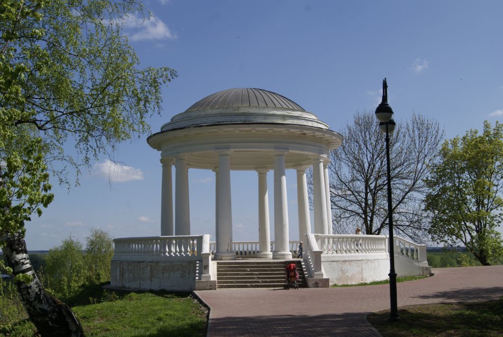 1. Градостроительное положение: Объект культурного наследия (памятник истории и культуры) народов Российской Федерации федерального значения «Ротонда», расположенный по адресу: Кировская область, г. Киров, Первомайский район, Александровский сад, Пионерский пер., д.6), входящий в состав объекта культурного наследия федерального значения «Парковые сооружения» (далее – объект культурного наследия), находится в северо-восточной части Александровского сада в исторической части города Киров. Является неотъемлемой частью ансамбля парковых построек, акцентируя видовые точки парка, а также служит ярким акцентом верхней набережной реки Вятка.2. Объемно-пространственная композиция:Объём ротонды – симметричное центрическое сооружение в формах позднего классицизма, представленное радиальной беседкой с 10 дорическими колоннами, поддерживающими купольное покрытие, и с двумя лестницами с южной и западной сторон.3. Конструктивная схема: Основные конструкции ротонды: стилобат, выполненный из кирпича; лестницы из природного камня; деревянные пустотелые колонны, поддерживающие деревянный антаблемент с куполом с покрытием металлическими листами.4. Архитектурно-художественное решение. Тип отделки: кирпичный стилобат с ограждением – оштукатурены и окрашены; деревянные конструкции колонн и антаблемента – окрашены; покрытие пола – брусчатка из натурального камня.4.1. Кирпичный радиальный стилобат с завершением профилем-полочкой.4.2. Южная и западная лестницы из натурального природного камня.4.3. Ограждения по периметру стилобата и лестниц с профилированными базами, поручнями, столбиками в форме вертикальных параллелепипедов и классицистическими балясинами.4.4. Десять колонн дорического ордера круглого сечения с дощатой обшивкой, с энтазисами, с профилированными капителями и базами.4.5. Деревянный трехчастный антаблемент с карнизом большого выноса с модульонами, переходящий в ступенчатый пояс, с покрытием металлическими листами.4.6. Плоский купол-сень, покрытие металлическими листами.4.7. Профилированные пояски. 4.8. Деревянное перекрытие купола с дощатой обшивкой.