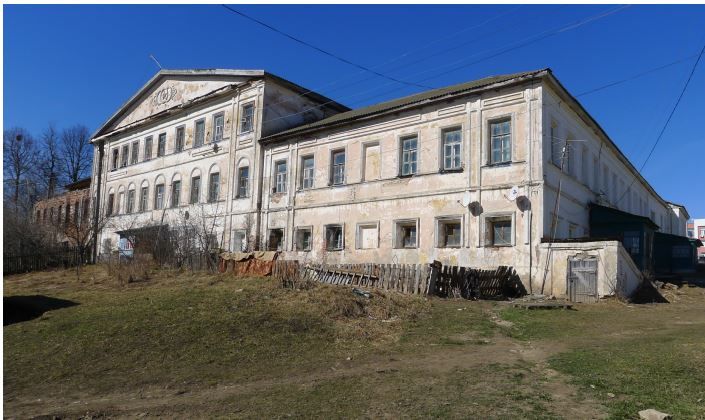 - градостроительная характеристика здания, играющего ключевую роль в панорамах города и застройке его центра, венчающего в центре г. Кондрова активную часть южного склона, спускающегося к р. Шане;- объемно-пространственная композиция прямоугольного, П-образного в плане здания, состоящего из 2-этажного центрального объема и 1-этажных крыльев, а также цокольного этажа, открытого и видимого с южной стороны, и подвала в юго-восточном углу здания; высотные отметки по конькам и двухскатные крыши объемов;- количество, осевое расположение, габариты и форма оконных и дверных проемов с прямыми перемычками;- материал и способ кладки капитальных стен – кирпич, сложенный верстовой кладкой; материал кровли – металл;- композиционное решение и оформление симметричного южного и других фасадов, включая междуэтажные и подоконные карнизы; филенчатые лопатки, фланкирующие крайние проемы центрального объема и крыльев; венчающие филенчатые фризы и карнизы, профилированные на стенах центрального объема и ступенчатые на крыльях; подоконные лежачие филенки; тянутые профилированные наличники перспективного облома; арочные завершения наличников на 1 этаже стены центрального объема;- характер обработки поверхности стен южного фасада - оштукатуренная кирпичная кладка, покраска в охристые и белый цвета;- пространственно-планировочная структура интерьера: историческая планировка, образованная капитальными стенами, формирующими в цокольном этаже коридор, связанный с помещениями, которые выходят окнами на уличные фасады; анфилады на верхних этажах; крестовые и коробовые своды в помещениях цокольного этажа;- элементы декора жилых помещений второго этажа – стенные карнизы.