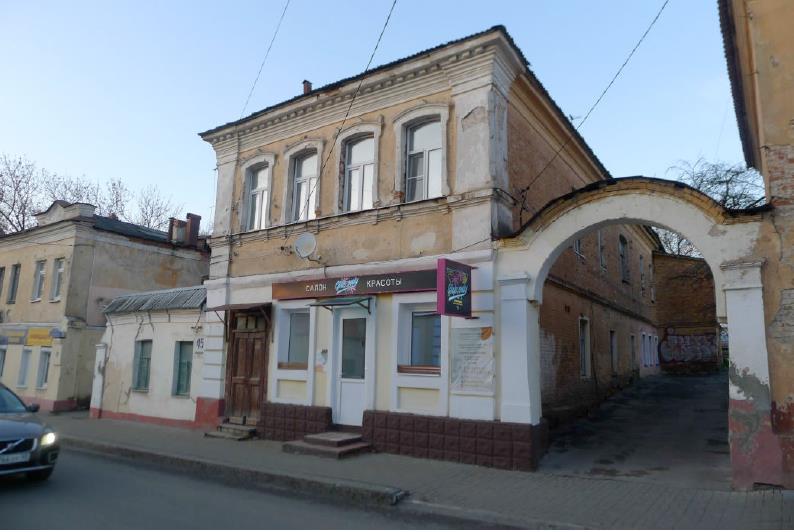 градостроительная характеристика здания, расположенного на северной стороне и по красной линии ул. Достоевского и участвующего в формировании довольно плотного и однородного по масштабу ряда двухэтажных домов конца XVIII – XIX веков;- объемная структура: сильно вытянутый от улицы двухэтажный флигель под двухскатной крышей с южной вальмой и примыкающий к нему с запада небольшой одноэтажный флигель под односкатной крышей, наклоненной ко двору; объемная структура двухэтажного флигеля, состоящего из большего, видимо, первоначального объема, расположенного на красной линии, и чуть менее широкого продолжающего его объема, на краю восточного фасада которого выступает лестничная клетка; поднимающиеся над крышей двухэтажного объема кирпичные трубы и чердачные окна; примыкающий к двухэтажному флигелю с восточной стороны по красной линии пилон бывших ворот; примыкающий к одноэтажному флигелю с западной стороны по красной линии пилон бывших ворот; выстоные отметки по конькам крыш;- количество, осевое расположение, габариты и форма оконных и дверных проемов, включая заложенные проемы проемы;- материал капитальных стен – красный кирпич;- композиционные решения и оформление фасадов:- главный (южный) фасад двухэтажного флигеля: симметричная композиция; фланкирующие фасад в первом этаже рустованные лопатки а во втором – крупные стилизованные пилястры с высокими базами-постаментами, поднимающимися до уровня подоконников, и капителями в виде раскреповок венчающего карниза; членящие фасад цоколь, междуэтажный карниз в виде полочки с подсечкой и связывающий верхние подоконники поясок из полочек; у верхних окон – не профилированные наличники с ушами, расширениями у подоконников и выложенными по лучковой дуге карнизиками, которые украшены маленькими акротериями; венчающий антаблемент, состоящий из невысокого фриза и многообломного карниза, профиль которого включает маленькие тянутые и выложенные из кирпича полочки, прямой каблучок и карнизную плиту на сухариках;- остальные карнизы: междуэтажные карнизы, состоящие из полочек (на восточном фасаде под междуэтажным карнизом – стилизованные городки); венчающие фризы и карнизы, в профиль которых входят полочки и прямой каблучок;- фасады одноэтажного флигеля: главный фасад – венчающие фриз и карниз, в профиль которого входит прямой каблучок; остальные фасады – простые венчающие карнизы, состоящие из полочек;- поверхности наружных стен:- двухэтажный флигель: главный фасад – штукатурка и окраска в светлый, возможно, охристый цвет с побелкой деталей декора; остальные фасады – окраска стен в цвет, гармонирующий с цветом главного фасада, штукатурка и побелка венчающих антаблементов;- одноэтажный флигель: штукатурка и окраска в светлый цвет с побелкой деталей декора;- пространственно-планировочная структура двухэтажного флигеля в капитальных стенах – поперечных, разделяющих его объемы и членящих первый этаж уличного объема на равные части, и в первом этаже дворового объема продольной; на втором этаже – сформированные некапитальными стенами коридор, тянущийся вдоль западной наружной стены, и ряд комнат, выходящих окнами на восток.