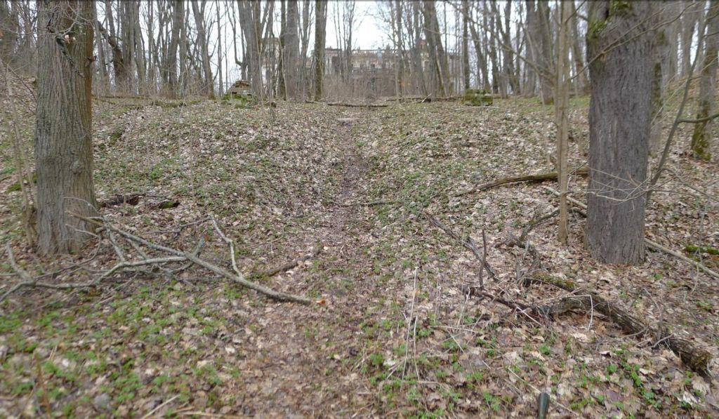 территория парка в пределах северо-восточной границы усадьбы, въездной аллеи и огибающей усадьбу р. Течи;сочетание в архитектурно-ландшафтной организации парка приемов регулярного и пейзажного паркостроения;симметричная композиция на склоне от главного дома к р. Тече, подчиненная оси ансамбля, включая не менее 3 террас с размерами и формами рельефа (в т. ч. валами по сторонам нижней прямоугольной террасы, приводящими к видовым площадкам), осевую дорожку со спусками с террас, местоположения постаментов скульптур и малых архитектурных форм;2 липовые аллеи – верхняя, тянущаяся от главного дома к юго-западу, и нижняя, тянущаяся вдоль р. Течи;2 пруда близ р. Течи с их размерами и формами;регулярные построения в древесном массиве между въездной и верхней липовой аллеями, а также парадным двором;«липовые беседки» и букетные группы лип на верхней части склона к р. Тече;породный состав парка, включая липы, дубы, ели, клены, вязы, сосны, акация, спирея и сирень.