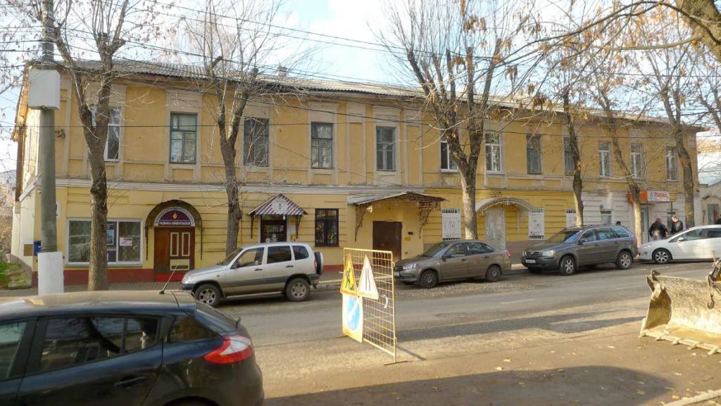 - градостроительная характеристика здания, расположенного на красной линии ул.Театральной и играющего своим крупным, протяженным вдоль улицы объемом организующую роль в формировании фронта ее застройки;- объемная структура: основной, довольно крупный двухэтажный объем, возведенный на плане с косыми северными и юго-восточным углами, сильно вытянутый вдоль улицы, перекрытый вальмовой крышей и дополненный дворовыми пристройками с двухскатными крышами; кирпичные трубы на крышах; высотные отметки по конькам крыш;- количество, осевое расположение, габариты и прямоугольная форма оконных и дверных проемов, включая заложенные проемы;- материал капитальных стен – красный кирпич;- композиционные решения и оформление фасадов:- главный (восточный) фасад: фланговые лопатки, обработанные на 2-м этаже крупными филенками; междуэтажный карниз, состоящий из полочек; венчающие низкий фриз и небольшой профилированный карниз; слабо выступающий ризалит в середине фасада, смещенный от его центра влево; на 1-м этаже – крупный ленточный руст, прерывающийся на ризалите; высокие замки над окнами, поднимающиеся до междуэтажного карниза; на 2-м этаже – наличники одинакового прямоугольного сечения, поднимающиеся от междуэтажного карниза и завершенные профилированными карнизами, которые подняты до венчающего фриза, подоконные лежачие прямоугольные филенки, поясок прямоугольного сечения в простенках на уровне подоконников, фланкирующие ризалит лопатки с крупными филенками; над главным входом – металлический двухскатный зонт на решетчатых ажурных кованых консолях с веерным рисунком, подзор и решетка фронтона с преобладанием в рисунке кругов и других геометрических элементов;- южный фасад основного объема: лопатка на правом фланге и венчающий карниз, состоящий из полочек и ряда кирпичей с подсечкой;- дворовый фасад основного объема: междуэтажный и венчающий карнизы из полочек;- фасады северной пристройки: на южном и западном фасадах – между - этажные карнизы из полочек, венчающие профилированные карнизы, пара чердачных арочных окон во фронтоне западного фасада, на северном фасаде – венчающий профилированный карниз;- фасады южной пристройки: венчающие карнизы из полочек, во фронтоне западного фасада – прямоугольное чердачное окно;- поверхности наружных стен основного объема, кроме дворовой: штукатурка и окраска в светлый тон с побелкой деталей декора; дворовая стена основного объема и стены дворовых пристроек – аналогичная штукатурка с окраской или лицевая кладка кирпича;- пространственно-планировочная структура: историческая структура в капитальных стенах, включая образованную поперечными стенами лестничную клетку на оси главного входа и примыкающую к ней небольшую лестничную клетку в середине здания.